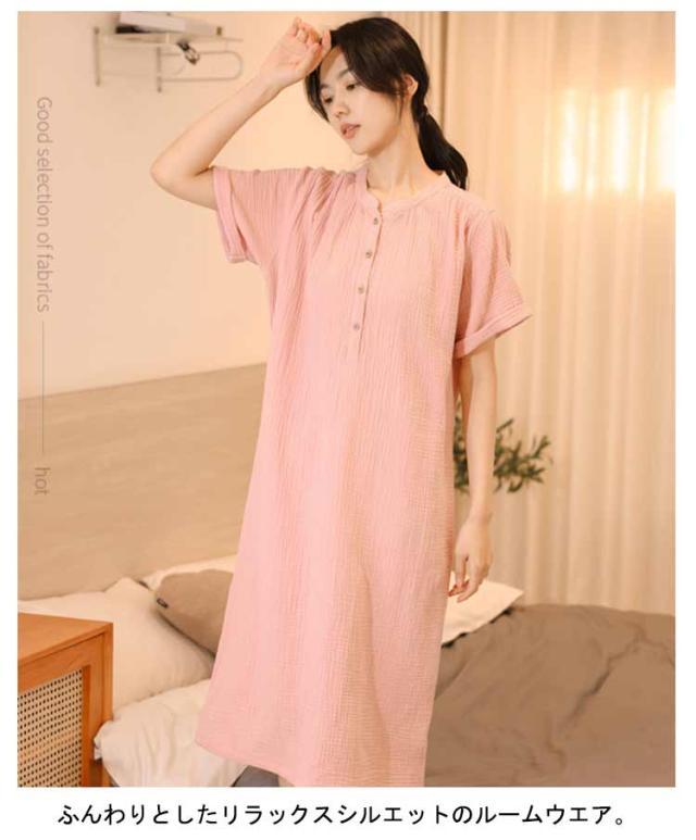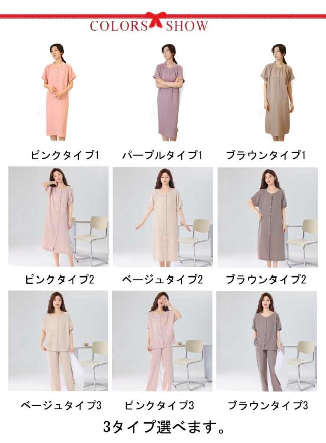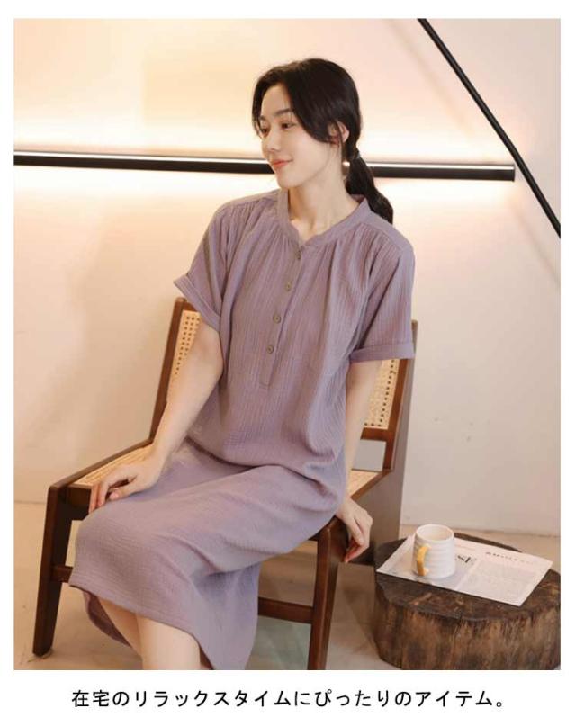綿 リラックスウエア ワンピースタイプ 前開き 上下セット ルームウエア 部屋着 コットン ネグリジェ パジャマ パジャマ 在宅着 春 夏 秋 母の日