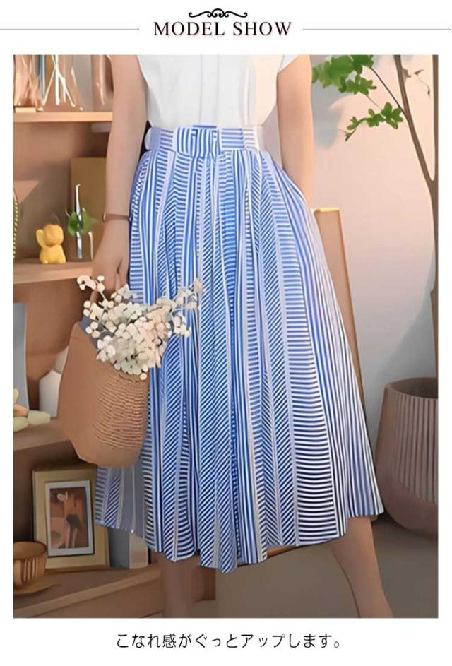 フレア 夏 ボーダー×ストライプ!ハイウエスト フレアスカート レディース ボーダー×ストライプ!ハイウエスト L ロングスカート ハイウェスト きれいめ Aラインスカート おしゃれ S M 春 XL 2XL