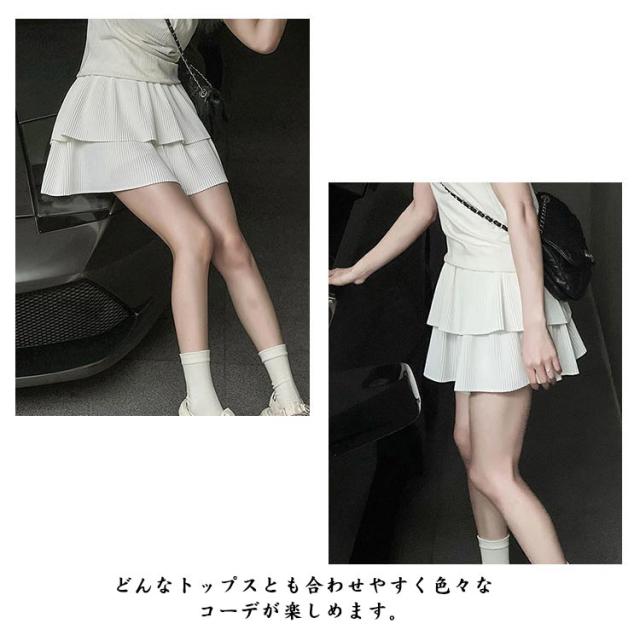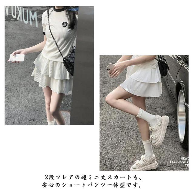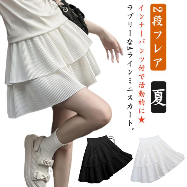 送料無料ミニスカート Aライン 2段フレア 春 夏 レディース スカート ボトムス プリーツ パンツ付き ショート丈 膝上丈 スカート 送料無料ミニスカート ハイウエスト コーデ 美脚 おしゃれ