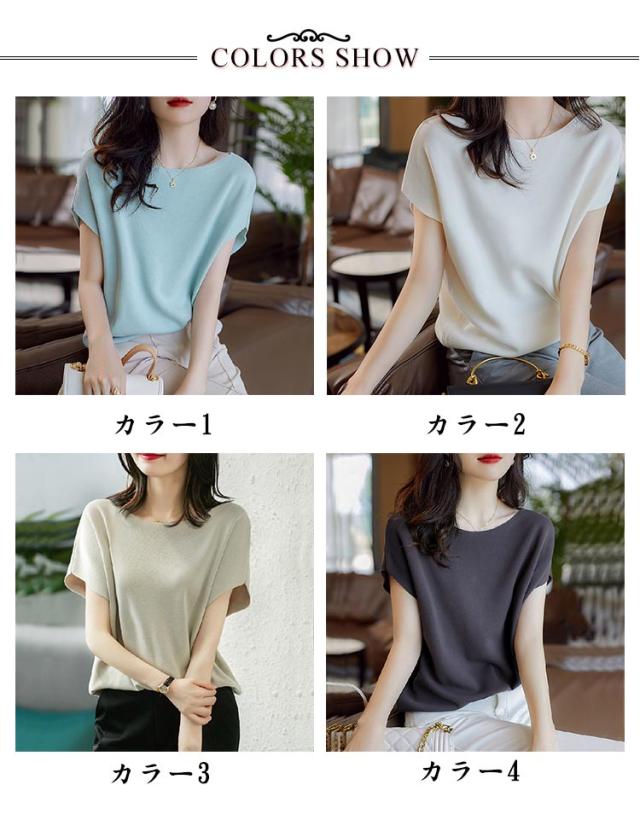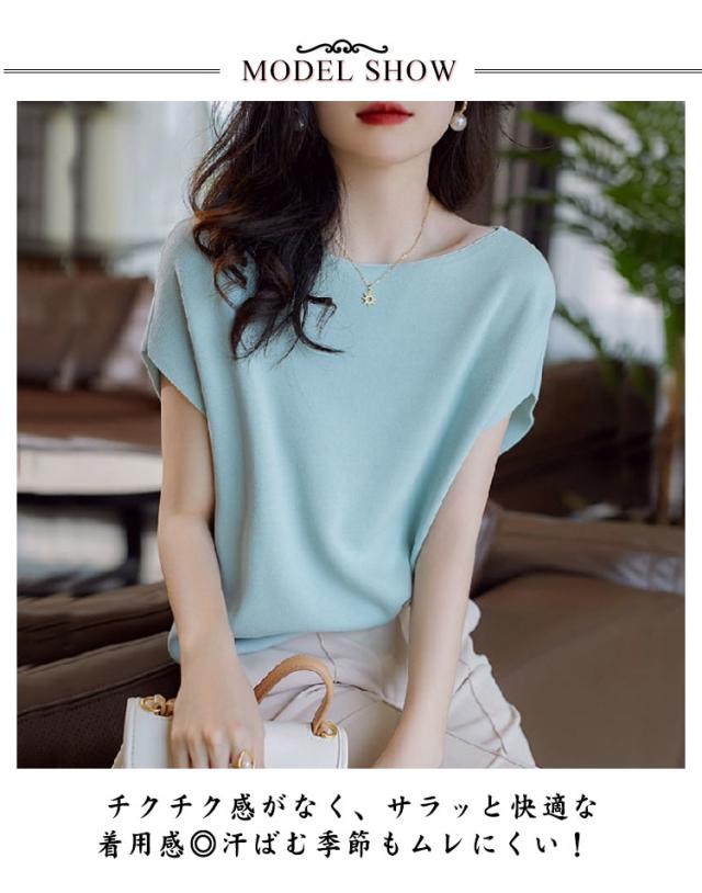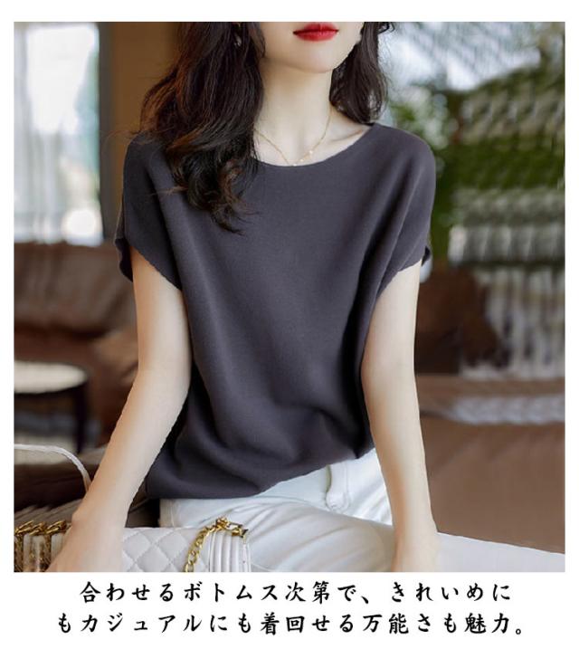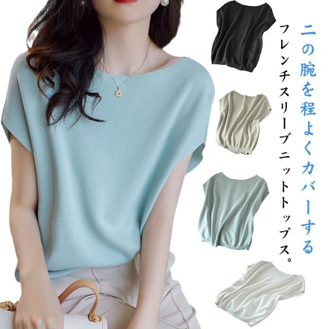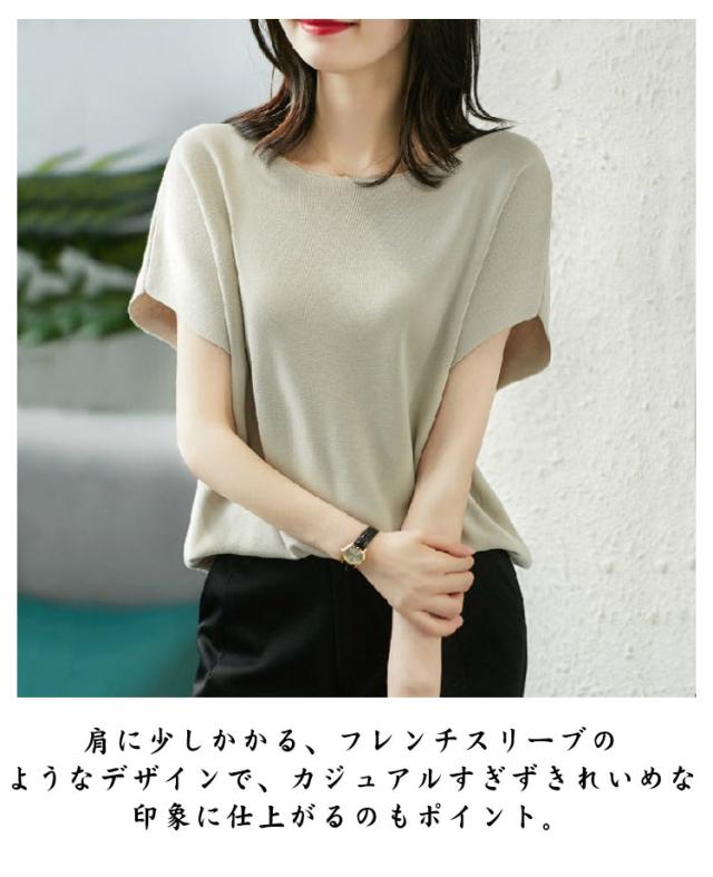 デイリー 送料無料ニット 接触冷感 半袖 ラウンドネック 送料無料ニット フレンチスリーブ 細見え ニット トップス サマーニット Tシャツ シンプル 無地 レディース 通学 半袖 カットソー tシャツ ゆったり 大人 きれいめ おしゃれ