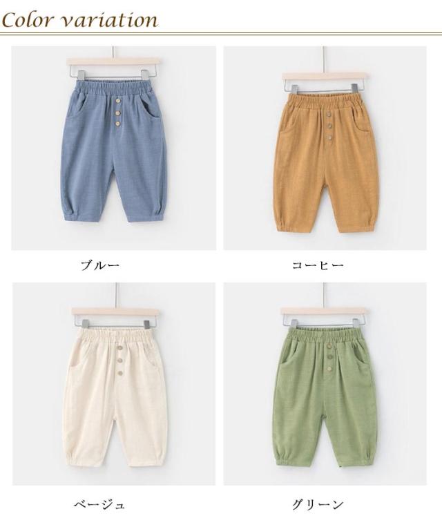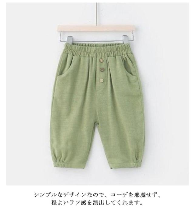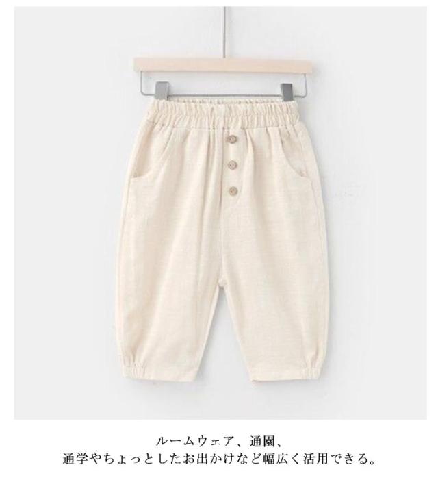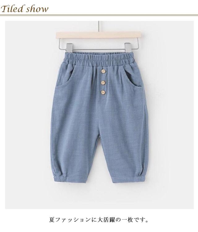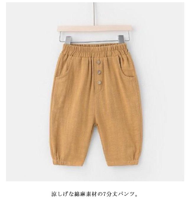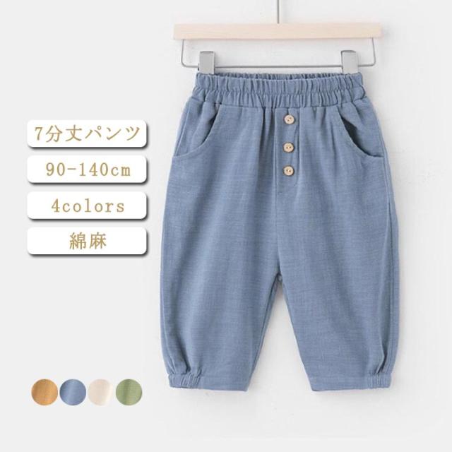 7分丈 子供服 男の子 綿麻 キッズ カジュアル ハーフパンツ ベビー ボトムス 女の子 七分丈 幼稚園 半ズボン 夏物 パンツ 夏 ウエストゴム ルームウェア 子ども 保育園 7分丈 小学校 無地 お洒落 100 90 薄手 110 120 130 140