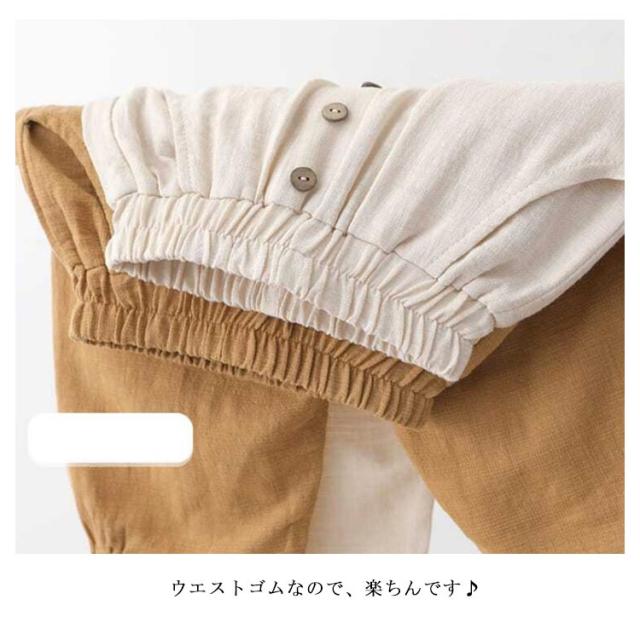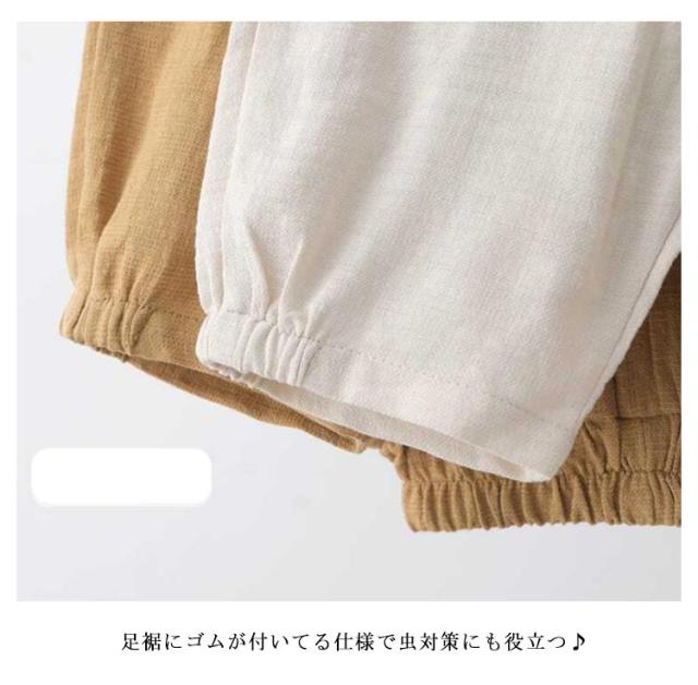 | 【綿麻】【7分丈パンツ】【90-140cm】【4colors】 夏ファッションに大活躍の一枚です。 涼しげな綿麻素材の7分丈パンツ。 ウエストゴムなので、楽ちんです♪ 足裾にゴムが付いてる仕様で虫対策にも役立つ♪ ルームウェア、通園、通学やちょっとしたお出かけなど幅広く活用できる。 シンプルなデザインなので、コーデを邪魔せず、程よいラフ感を演出してくれます。 | |