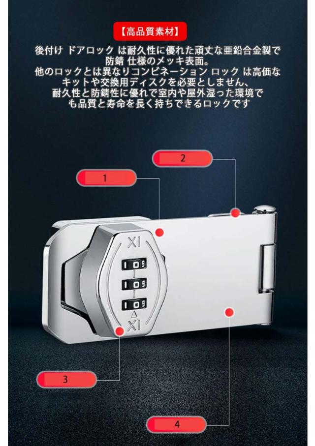 引き戸 ドア 窓 ドアロック 引き戸 扉 鍵 防犯グッズ 後付け サッシ DIY ロック 金具 後付け 補助錠 ベランダ 鍵キャビネット ロッカー 穴あけ不要 鍵 書庫 収納ボックス ポスト 鍵 錠 ロック3桁ダイヤル式 亜鉛合金製 防錆 耐震 引き戸 転落防止