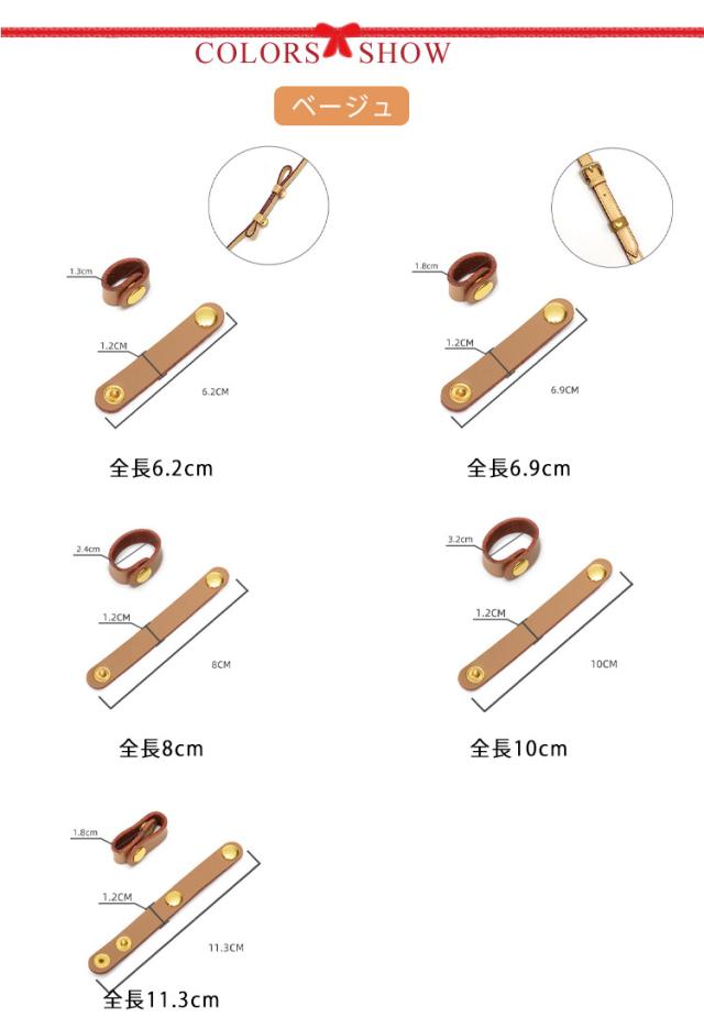 2個セット 本革バッグ 調整バックル ショルダー紐 長さ調節 装着簡単 ショルダーバッグ トートバッグ ハンドバッグ パーツ ショルダーストラップ 長さ調整 固定用 牛革 DIY チャーム アクセサリー 手芸 部品 送料無料 ベージュ ブラウン ブラック ライトブラウン レッド