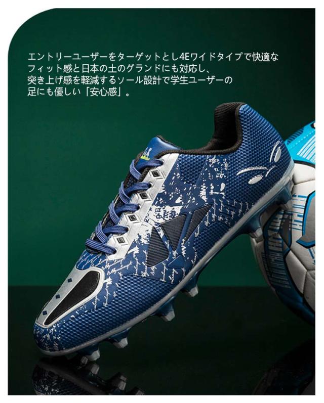 | 18色 エントリー層の足に優しい、スーパーワイドタイプで快適フィット 突き上げ感の少ないスパイクソール「安心感」のあるなデザインと、足に優しい安心設計。 エントリーユーザーをターゲットとし4Eワイドタイプで快適なフィット感と日本の土のグランドにも対応し、 突き上げ感を軽減するソール設計で学生ユーザーの足にも優しい「安心感」。 滑りにくいインソールも搭載。 | |
