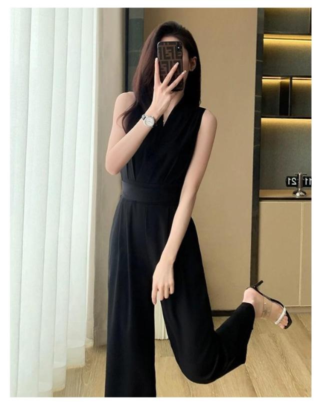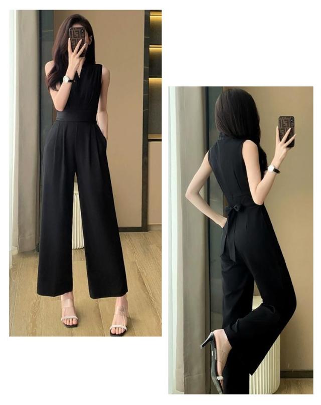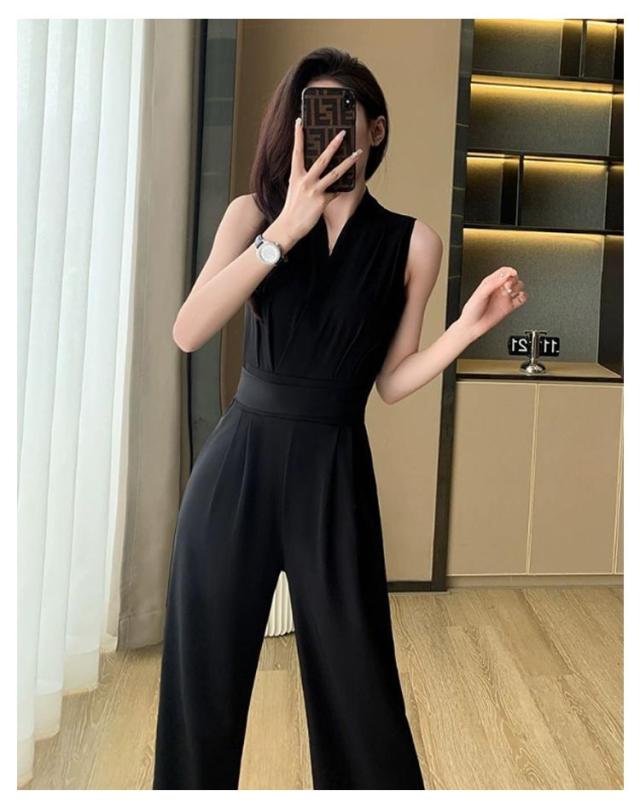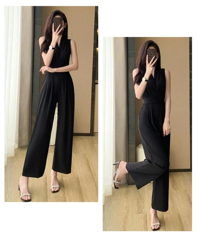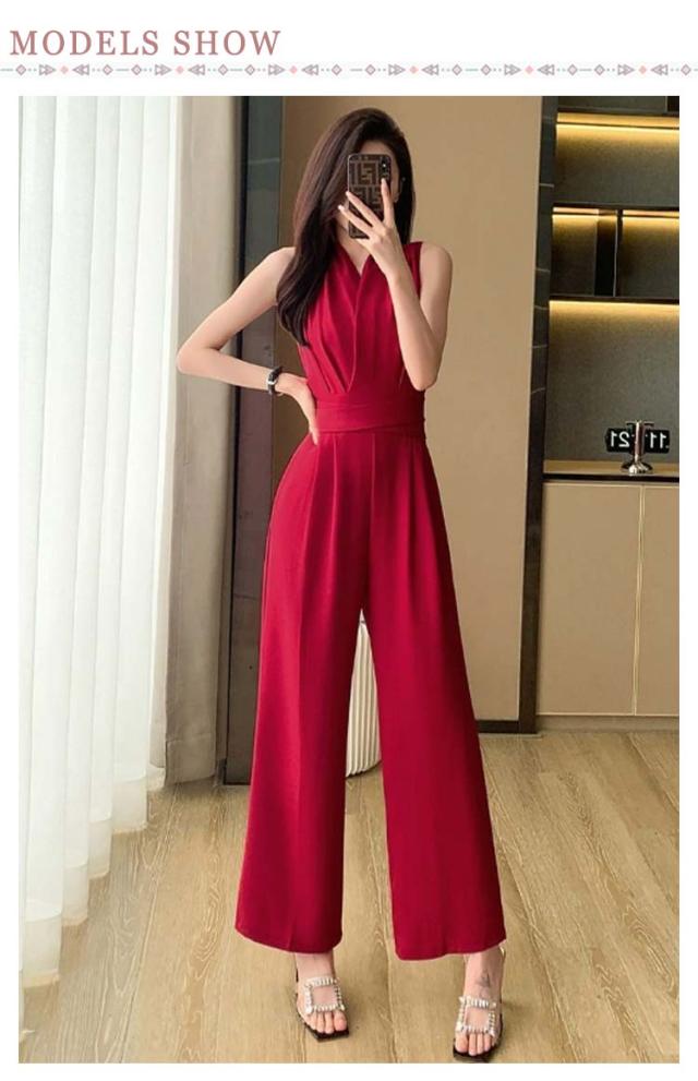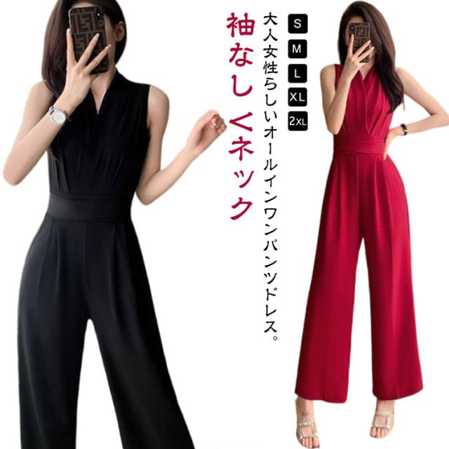 ノースリーブ ロングドレス カジュアル パンツドレス サロペット オールインワン 送料無料 ワイドパンツ 袖なし パンツドレス 卒業式スーツ 入学式 母 ママ パンツスーツ 結婚式 Vネック 春 送料無料 夏