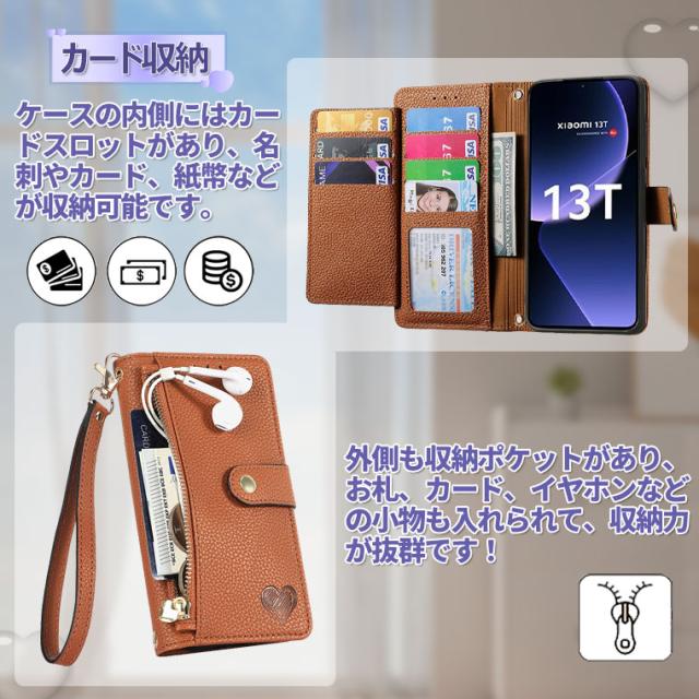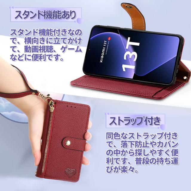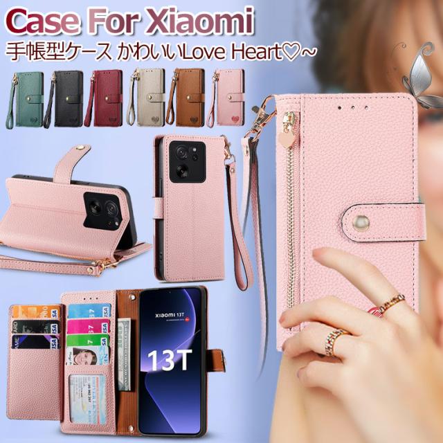 Xiaomi 13T ケース 手帳型 Xiaomi 13T Pro カバー ストラップ付き Xiaomi 13T Pro ケース おしゃれ 手帳型ケース Xiaomi 13T 手帳ケース Xiaomi 13 t pro スマホケース オシャレ 可愛い かわいい カード収納 スタンド機能 耐衝撃 ラブハート