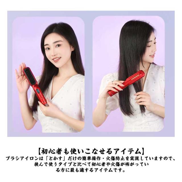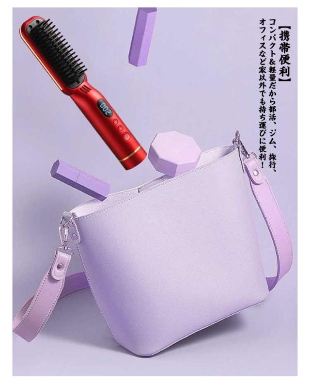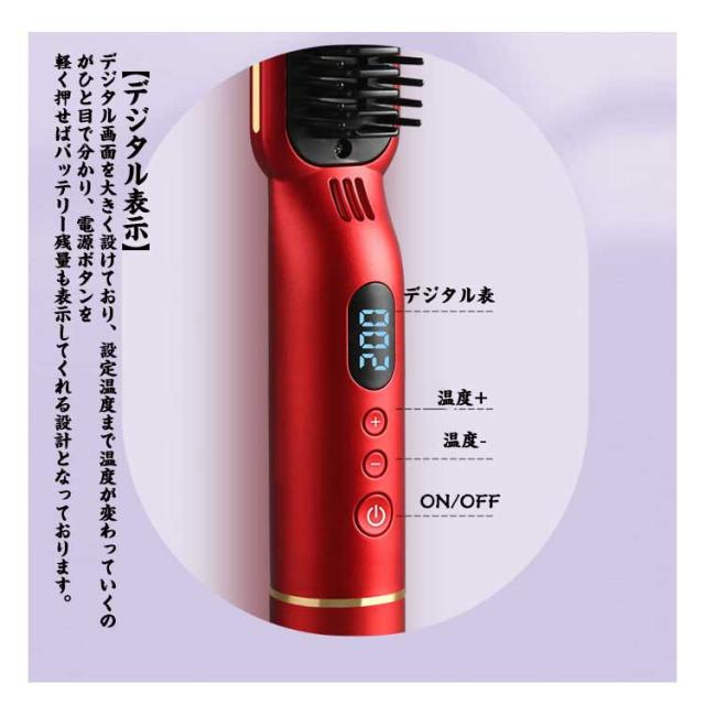 火傷防止 ブラシアイロン ヒートブラシ ストレート 前髪用 連続使用 130〜200℃温度調整 デジタル表示 プロ仕様 持ち運び 静電気防止 セラミックコーティング コードレス ヒートブラシ 家庭 旅行 出張