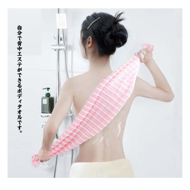 | 【背中のお肌磨き】【泡立ちの良さ】【カビが生えにくい】 自分で背中エステができるボディタオルです。 細かい繊維が波のように織り込まれており、泡立ちがいっそうUP。 こまやかな繊維がお肌に密着、「細かい汚れ」や「古い角質」をしっかり落とします。 ボディソープ、石けんのどちらも相性がよく、少量のソープでもしっかり泡立ちます。 ボディタオルなので、手だけでは洗いにくい背中もしっかり洗えて全身スッキリ! 水切れがよく、湿気の多いお風呂場で使ってもカビが生えにくい、いつも清潔に使うことができます。 | |