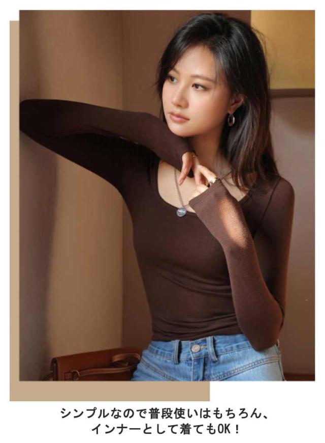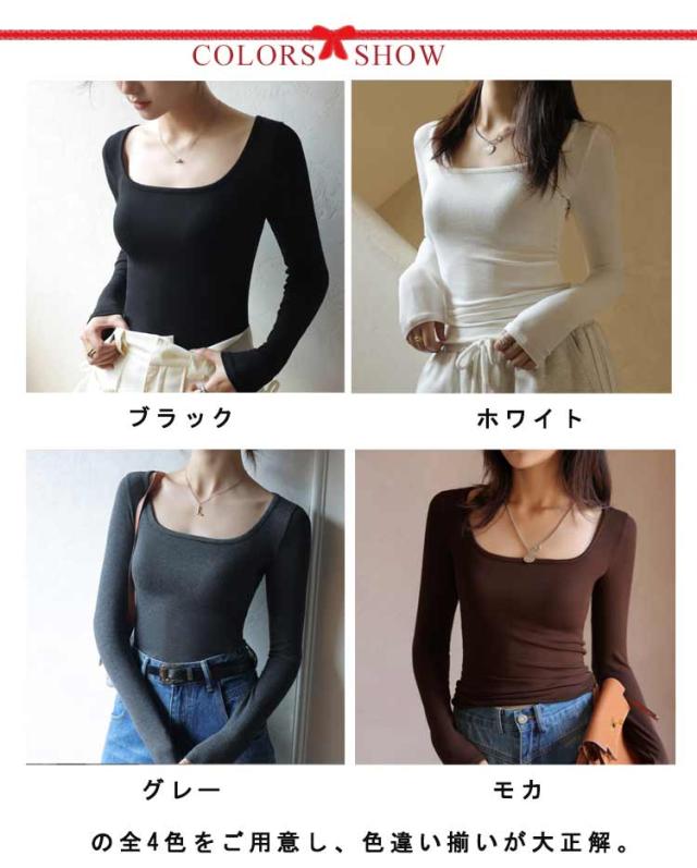 | スクエアネックタイプの長袖トップス。 顔周りをスッキリと見せてくれるスクエアネックで華奢見せ! 長袖で腕周りまですっきりで細見え効果もあり。 流行に関係なく着られるアイテムは、一つは持っておきたい! の全4色をご用意し、色違い揃いが大正解。 シンプルなので普段使いはもちろん、インナーとして着てもOK! | |