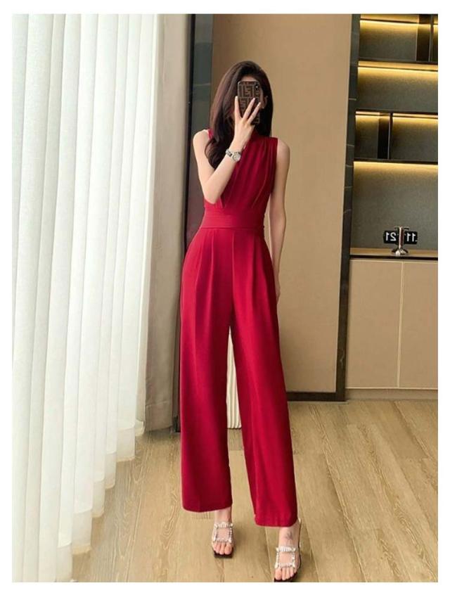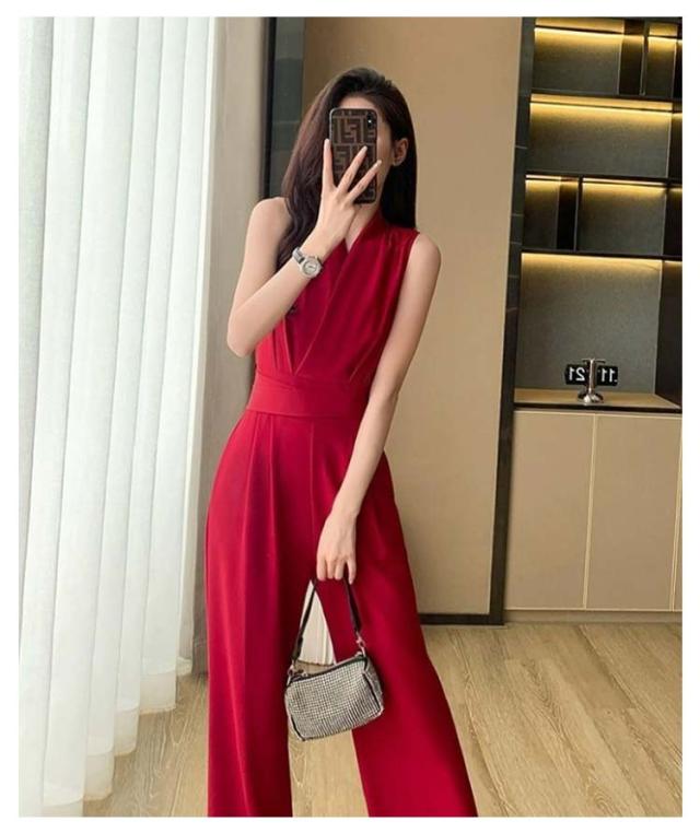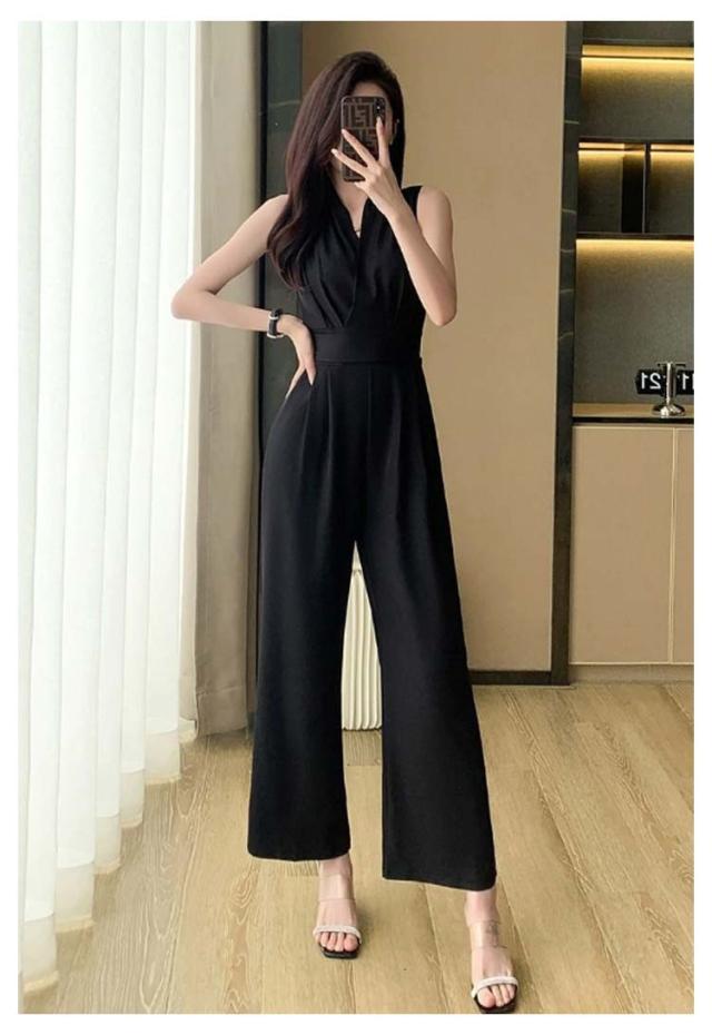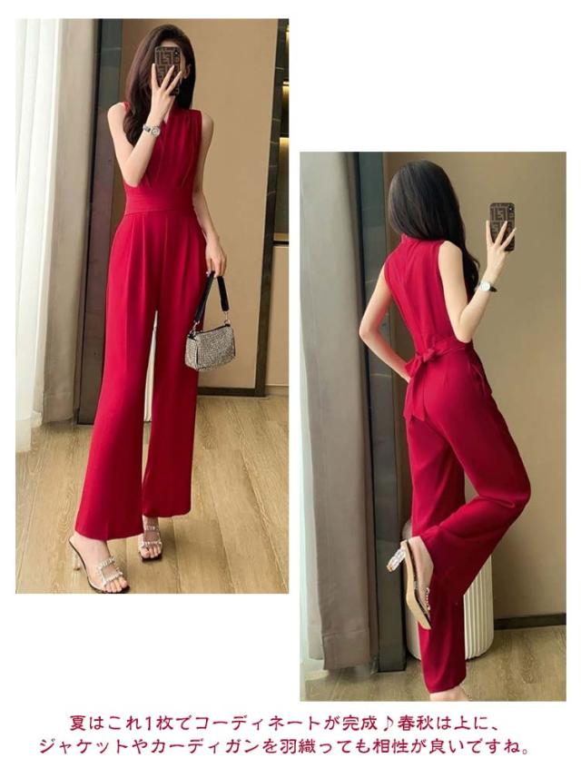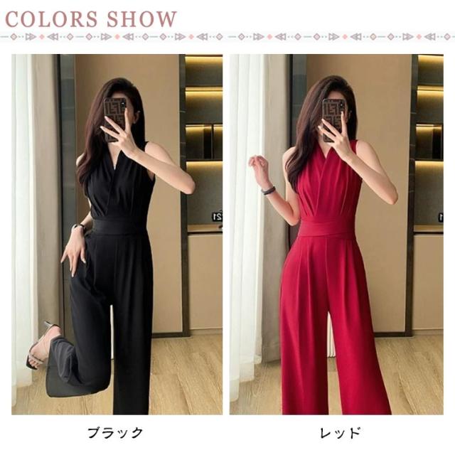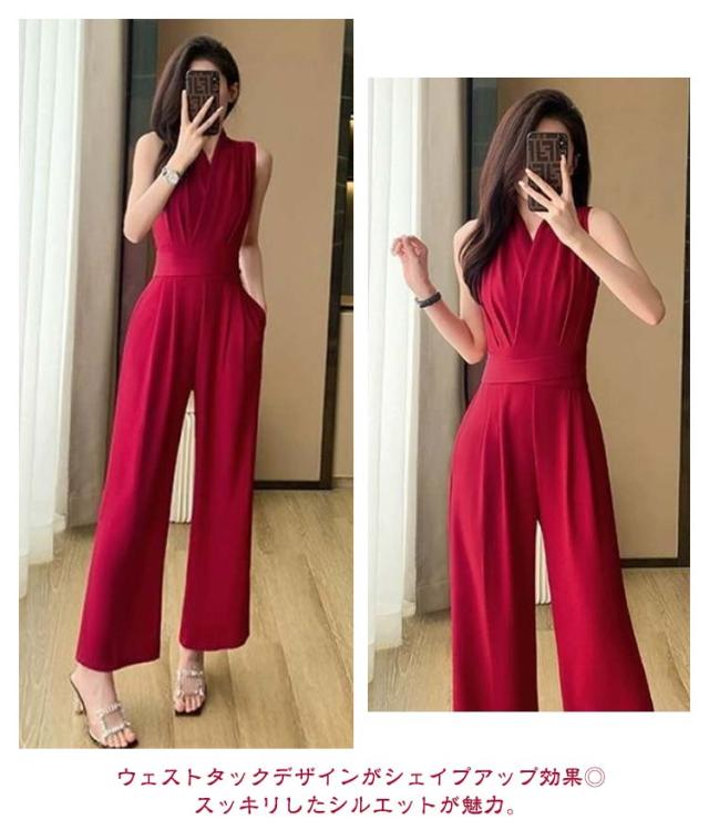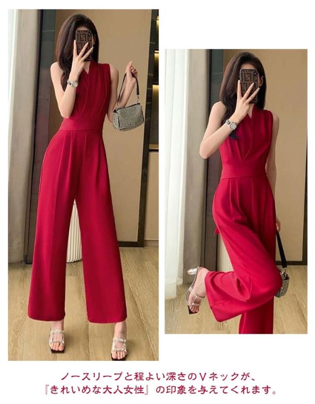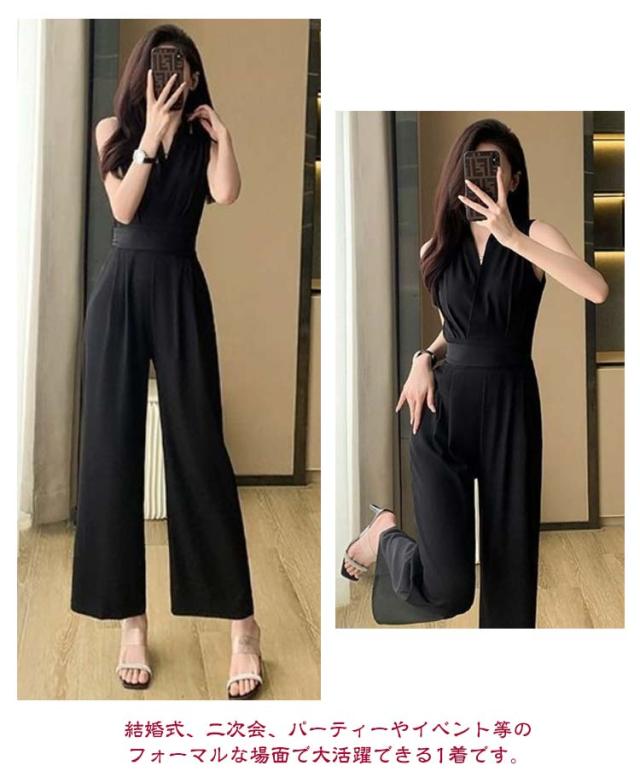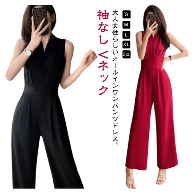 レディース 卒業式スーツ パンツドレス 入学式 サロペット ワイドパンツ ノースリーブ オールインワン パンツスーツ 袖なし ロングドレス 送料無料 母 ママ Vネック 結婚式 送料無料 カジュアル 春 夏