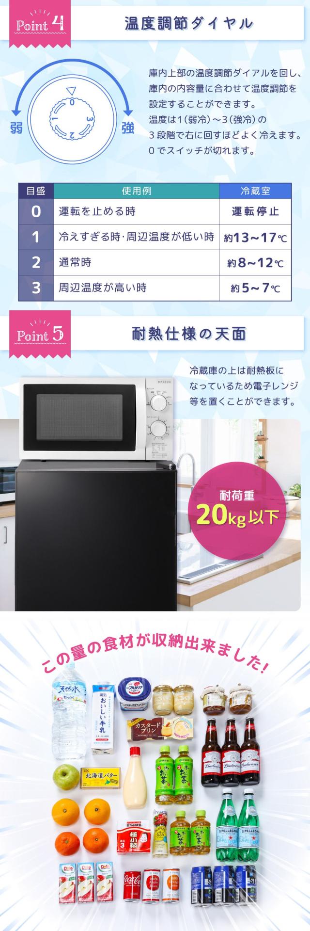 冷蔵庫の上は耐熱板になっているため電子レンジ等を置くことができます