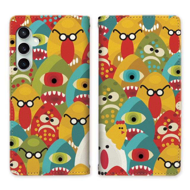 au Galaxy S23 FE SCG24 ベルトなし スタンド機能 - Eggモンスターデザイン - 手帳型 スマホケース 手帳ケース 手帳カバー スマホカバー マグネットでピタッと閉じる