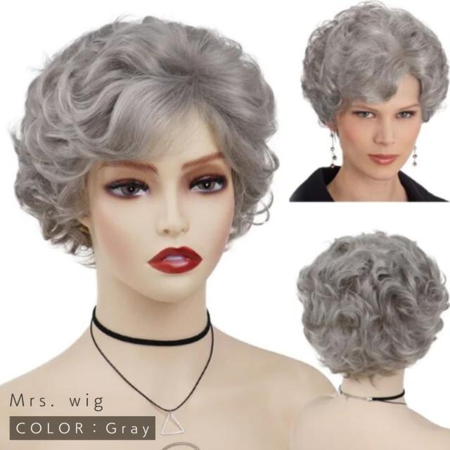 ミセスウィッグ シニア向け ショート 60代 グレーカラー かつら ウィッグ 大人ウィッグ ミセス シニア 40代 50代 60代 70代 高齢者 薄毛かくし 頭頂部ウィッグ 白髪ウィッグ ふんわりヘア 女性 婦人用 カツラ レディース