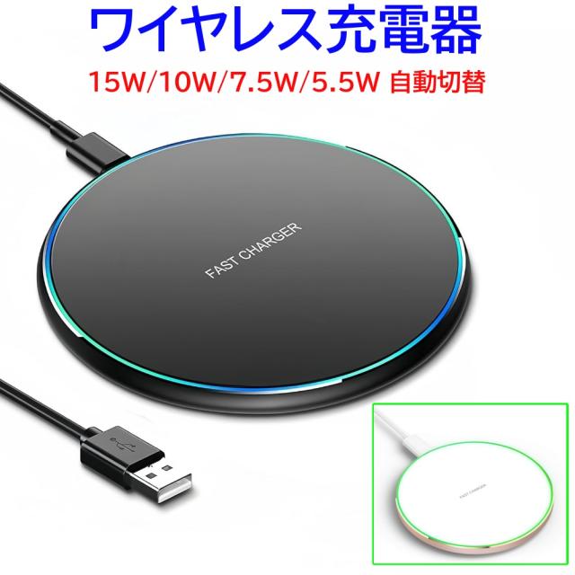 ワイヤレス充電器 15W 急速 薄型 iPhone 15 14 Android Galaxy AirPods スマホ Type C アイフォン アンドロイド エアポッツ 過充電防止 置き型 ケース対応