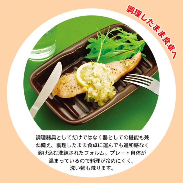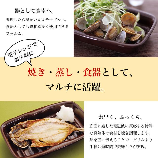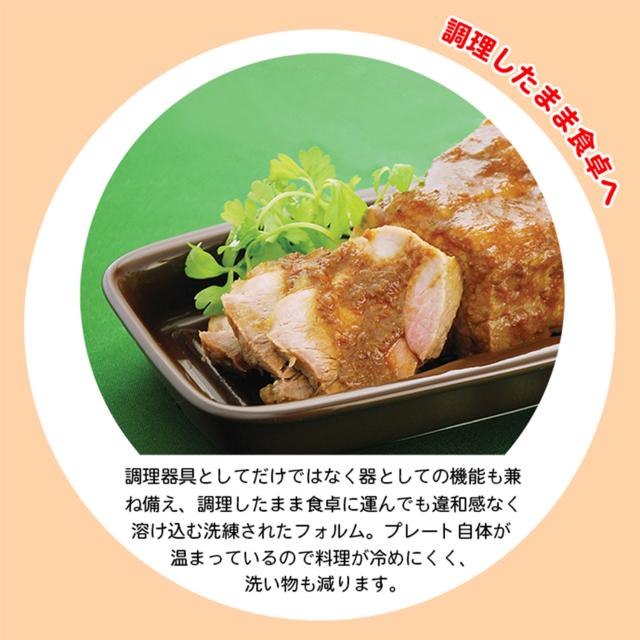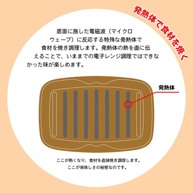 簡単で時短な電子レンジ調理でスマートな生活を始めませんか?電子レンジで3分、焼き魚のできあがりです。電子レンジでチンするだけの超簡単焼き料理。プレートについている発熱体が、電磁波(マイクロウェーブ)に反応して発熱。火を使わないので、お子様・ご年配の方でも安心・安全に調理できます。