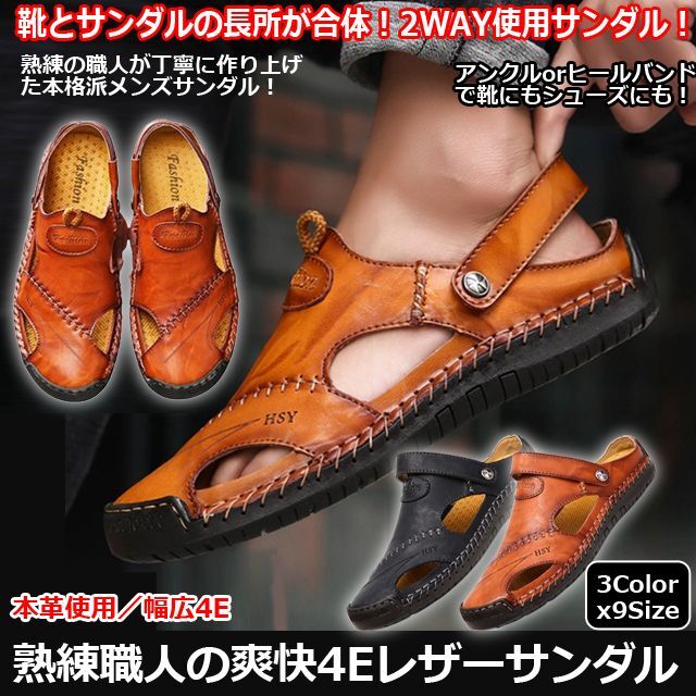 熟練職人の爽快4Eレザーサンダル (本革 メンズサンダル 男女兼用 靴 シューズ ドライビングシューズ タウンシューズ )
