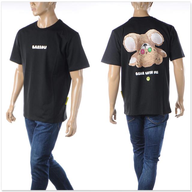 バロー BARROW Tシャツ メンズ ブランド 半袖 クルーネック S4BWUATH147 ブラック ブランド ロゴ テディベア プリント コットン カジュアル ストリート おしゃれ 人気 送料無料