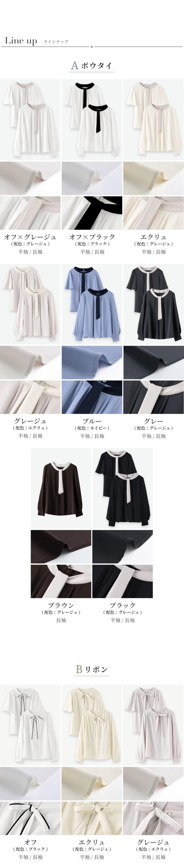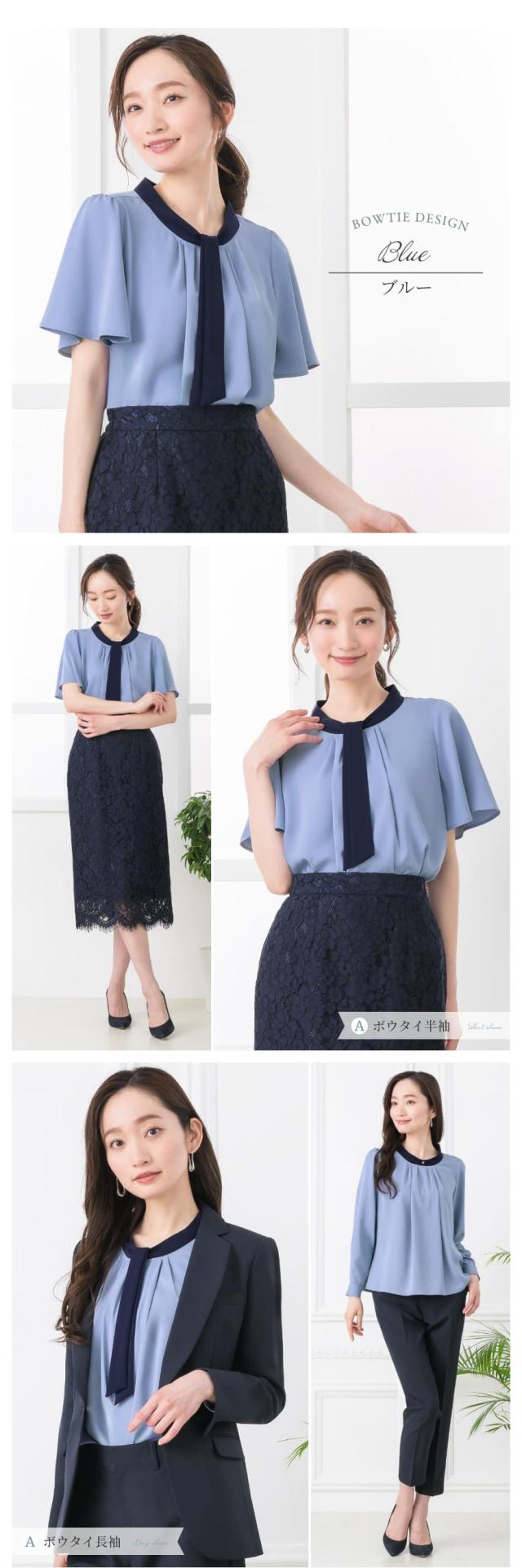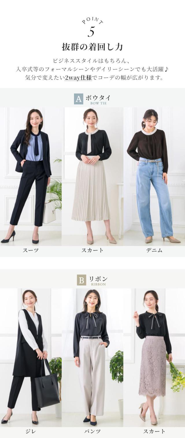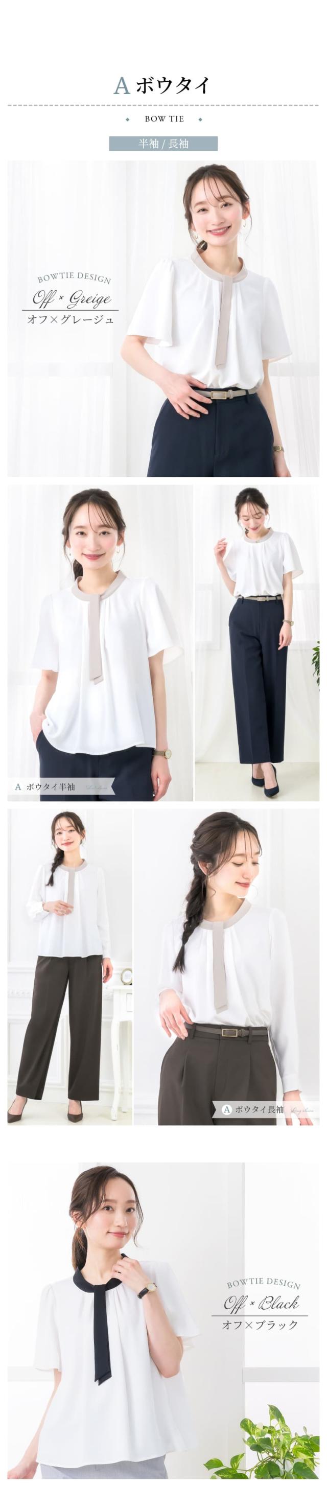 ブラウス レディース おしゃれ オフィス カジュアル 一枚着 配色 2WAY 選べる ボウタイ リボン スーツ インナー トップス ビジネス 半袖 長袖 透けにくい 大きいサイズ 小さいサイズ 通勤服 春 夏 秋 冬 卒業式 入学式 メール便送料無料 1/1