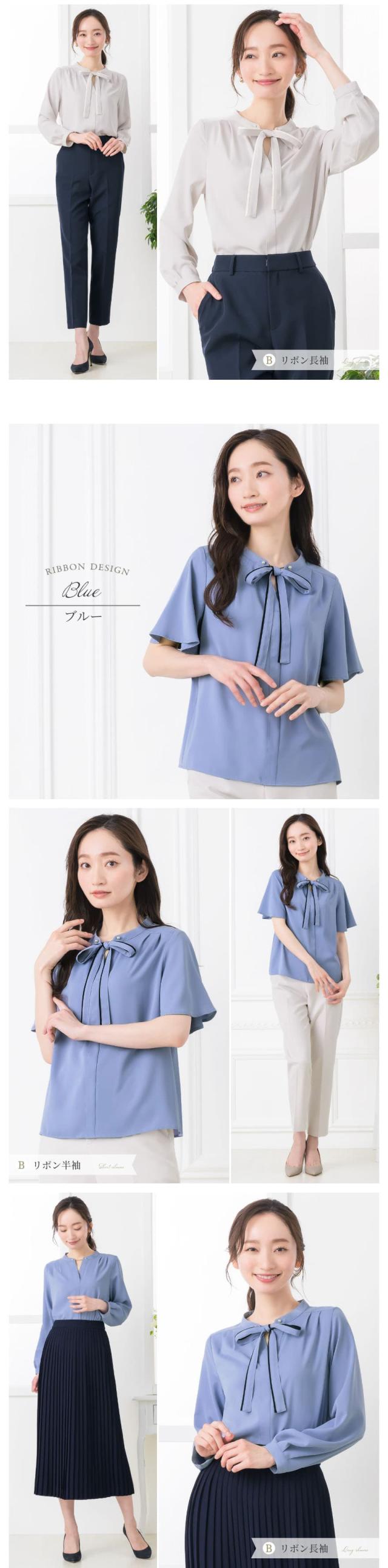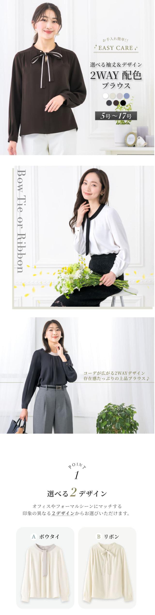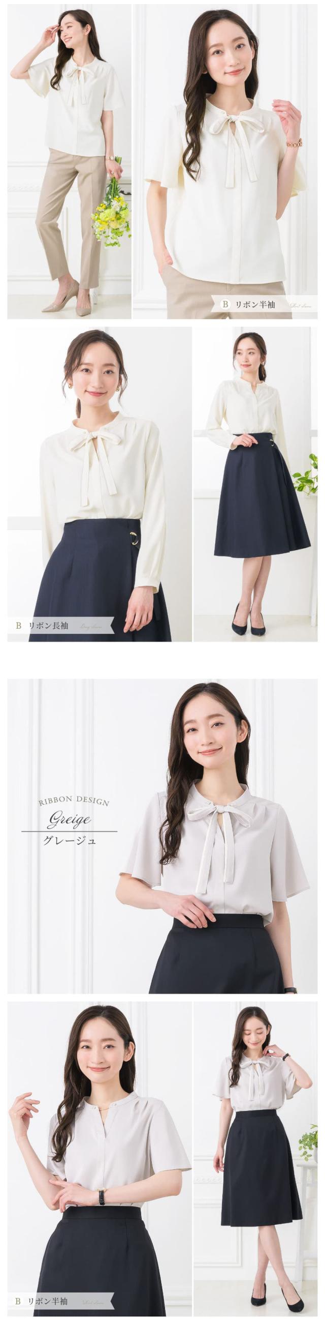ブラウス レディース おしゃれ オフィス カジュアル 一枚着 配色 2WAY 選べる ボウタイ リボン スーツ インナー トップス ビジネス 半袖 長袖 透けにくい 大きいサイズ 小さいサイズ 通勤服 春 夏 秋 冬 卒業式 入学式 メール便送料無料 1/1