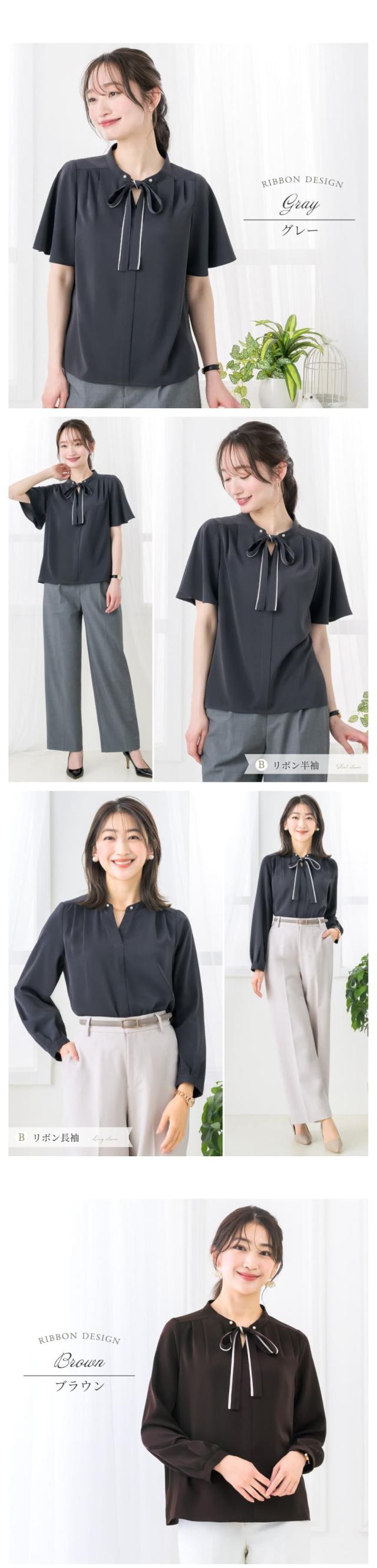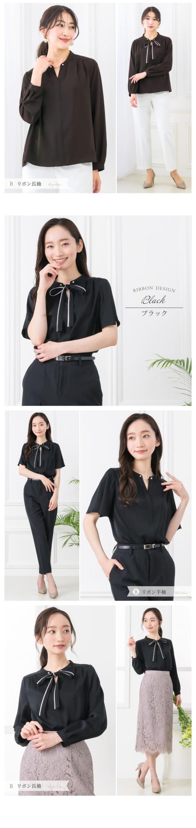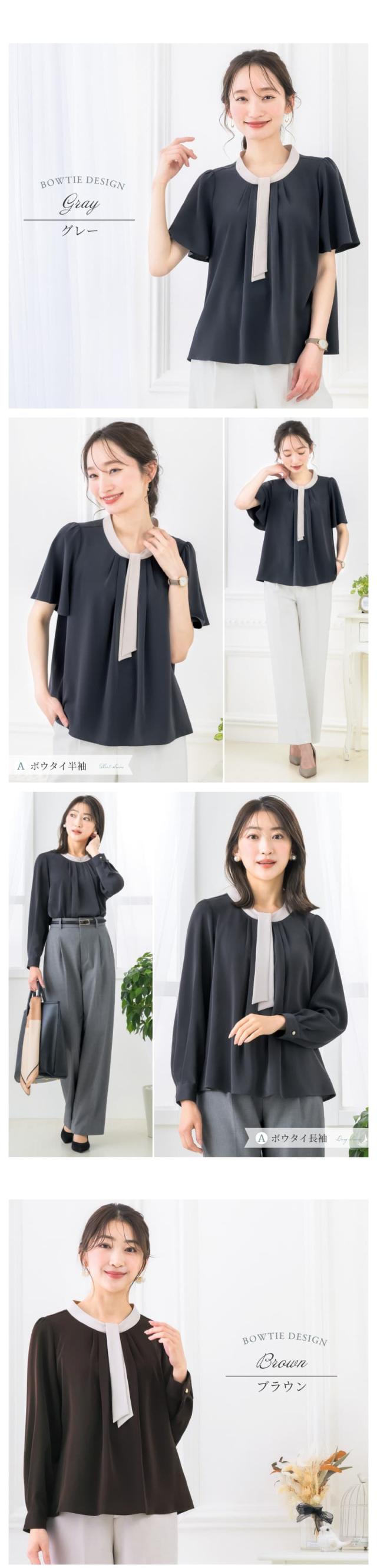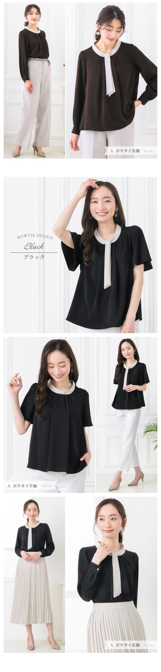 ブラウス レディース おしゃれ オフィス カジュアル 一枚着 配色 2WAY 選べる ボウタイ リボン スーツ インナー トップス ビジネス 半袖 長袖 透けない 大きいサイズ 小さいサイズ 通勤服 春 夏 秋 冬 卒業式 入学式 メール便送料無料 1/1