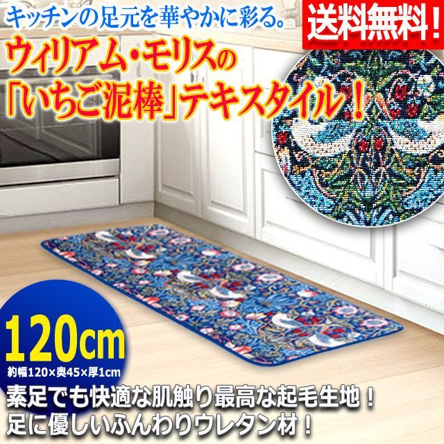 ウィリアム・モリスの「いちご泥棒」キッチンマット[120cm] (ギフト 贈り物 引っ越し祝い 新築祝い プレゼント)