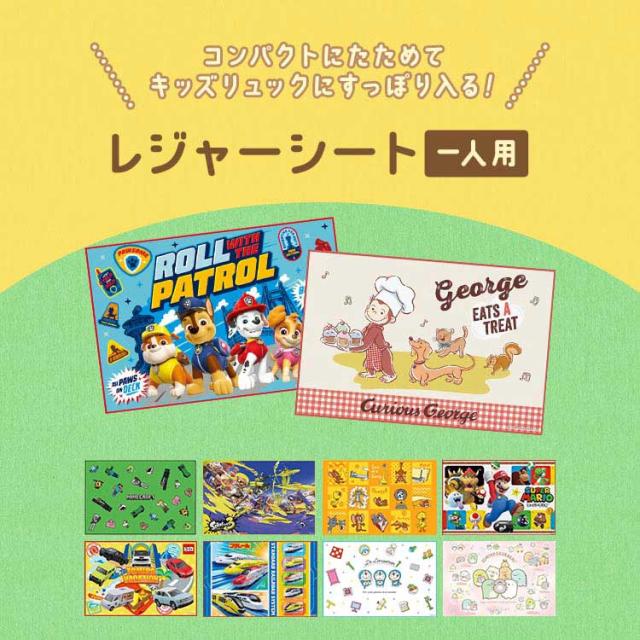 コンパクトにたためて、キッズリュックにすっぽり収納できる!子供たちから大人気のキャラクターがデザインされたレジャーシートが勢揃い♪遠足や運動会、ピクニックにぴったりなお子さま一人用サイズです。