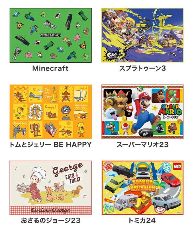 Minecraft / スプラトゥーン3 / トムとジェリー / スーパーマリオ / おさるのジョージ / トミカ / プラレール / ドラえもん / パウ・パトロール / すみっコぐらし