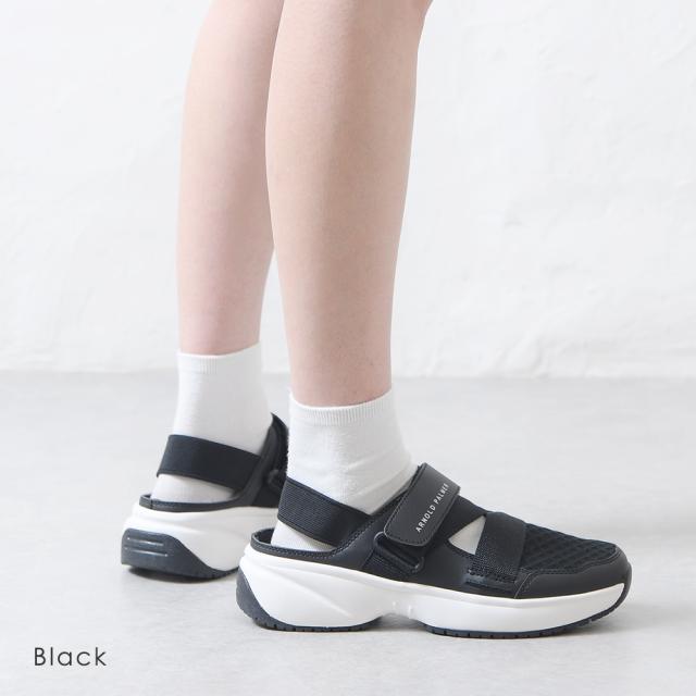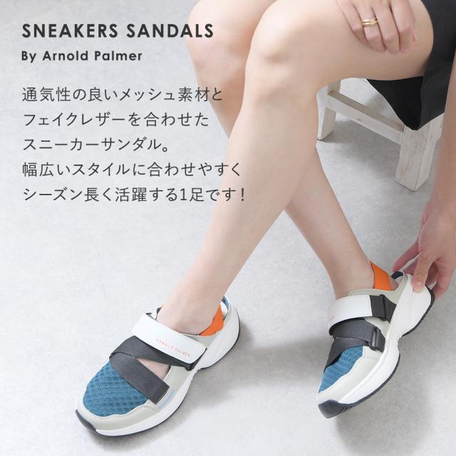 通気性の良いメッシュ素材とフェイクレザーを合わせたスニーカーサンダル。