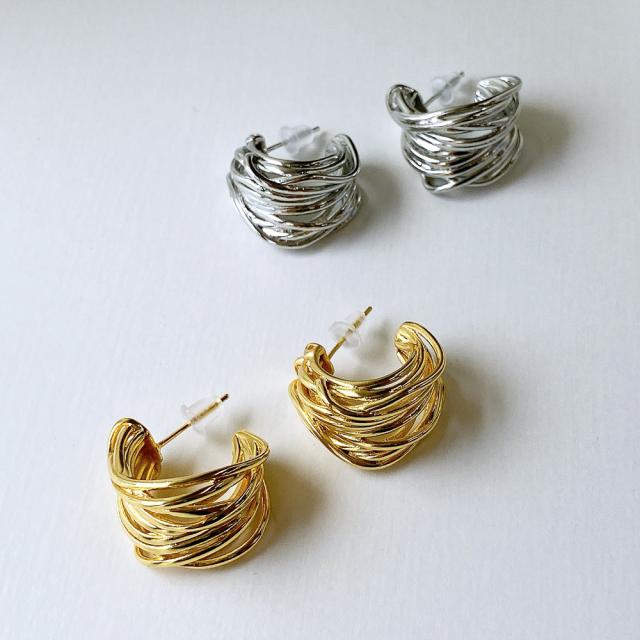 送料無料 大振りレイヤードラインフープピアス 変形 レディース シルバーゴールド 大きめ
