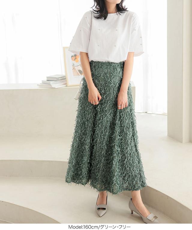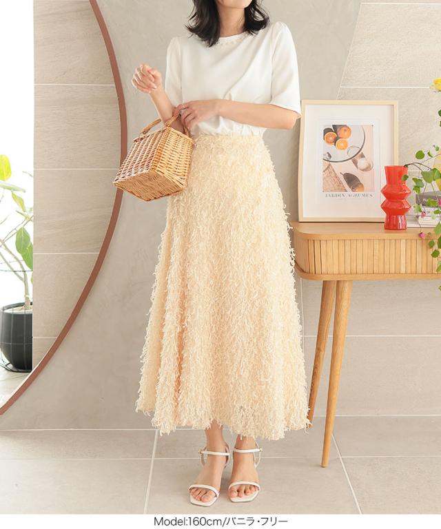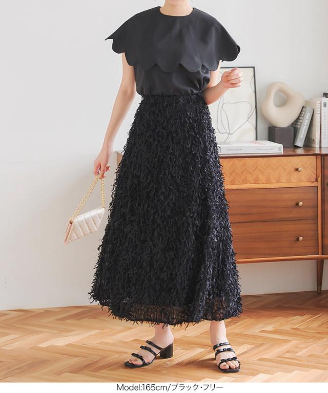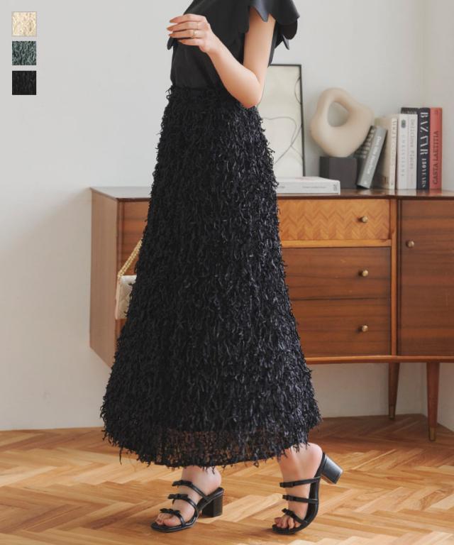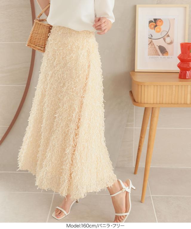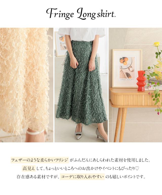 春新作 フリンジスカート M4056 入荷済 フリンジ フェザー 羽 トレンド レディ フェザースカート フリンジスカート セミフレアスカート ウエストゴムスカート ゴムスカート 楽ちん 華やか 上品 豪華 高見え 存在感 レディース