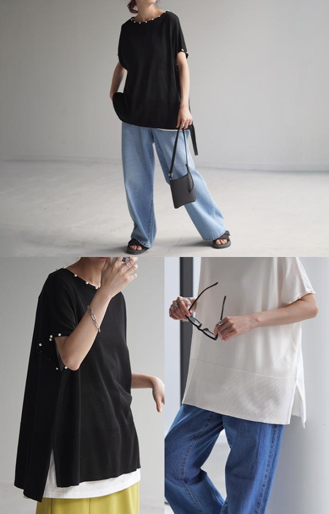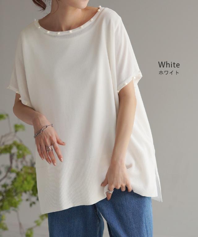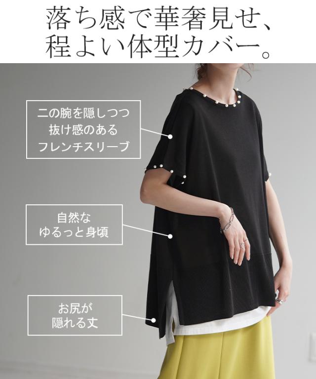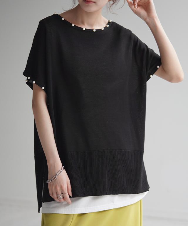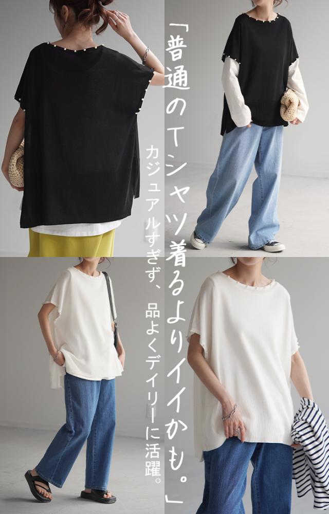 パール付き サステナブル エコ 夏ニット サマー 汗染み 汗染み軽減 涼しい 吸水速乾 速乾 早く乾く 薄手 薄め 薄い パールニット パール付きニット 袖コンシャス 袖コン パールネックレス 袖パール リブ 裾リブ Tシャツ トップス カットソー ティーシャツ ティシャツ レディース 半袖 半袖T 半袖Tシャツ 無地 ビッグT ビッグTシャツ ビックT ビックTシャツ 二の腕隠し ドロップショルダー フレンチスリーブ フレンチスリーブトップス フレンチスリーブT シアー シースルー メッシュ 透かし編み 透け シアーニット シースルーニット メッシュニット 透かし編みニット 透け感 ゆるT ゆる ゆったり ゆったりサイズ ボックス ボックスT スリット 袖あり 長い 長め ロングTシャツ ロングトップス ロングT ロングカットソー ロングニット サマーニット サマー 夏ニット 夏セーター 春ニット 春セーター リブニット リブ リブトップス チュニック ドルマントップス ドルマン ドルマン袖 ドルマンスリーブ ドルマンスリーヴ ビッグシルエット ビックシルエット ビッグ ビック オーバーサイズ オーバー ビッグサイズ ビックサイズ big Uネック U字ネック 丸首 クルーネック ボートネック シンプル レイヤード レイヤードトップス レイヤードT レイヤードコーデ 重ね着 レイヤードカットソー ブラック 黒 黒色 ホワイト 白 白色 体型カバー 二の腕カバー 二の腕隠し 着痩せ 着回し お尻が隠れる 大きい 大き目 プラスサイズ カジュアル ナチュラル 大人カジュアル レディースファッション ベーシック オフィス オフィスカジュアル テレワーク リモートワーク リモート オンライン飲み会 韓国ファッション 韓国風 韓国 ストリート おうち時間 お家時間 デート お出かけ フェス リゾート ビーチ 海 旅行 飛行機 パーティー パーティ 着回し 母の日 プレゼント ギフト 贈り物 クリスマス シンプル 大人 オトナ 大人カジュアル オフィスカジュアル オフィス レディースファッション 女性 綺麗 綺麗目 きれい キレイ キレイめ キレイメ きれいめ 高見え 上質 上品 ゆる ゆったり 旬 トレンド 20代 30代 40代 50代 60代 おしゃれ お洒落 オシャレ 可愛い かわいい カワイイ カッコいい 格好良い カッコイイ 春 夏 秋 冬 春夏 秋冬 HUG.U HUGU ハグユー はぐゆー