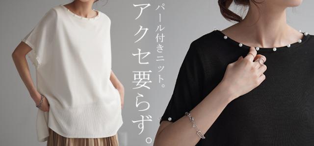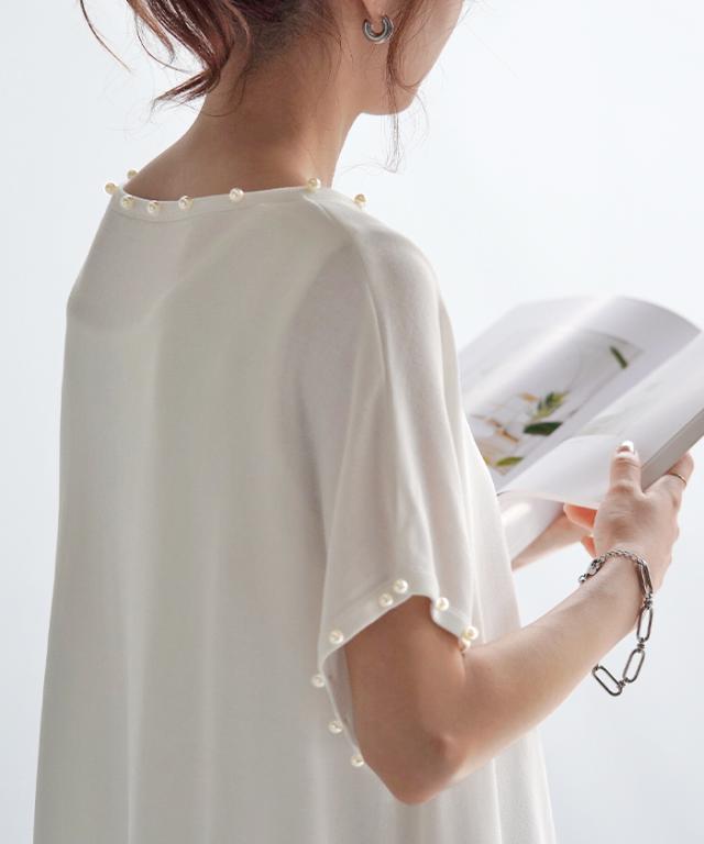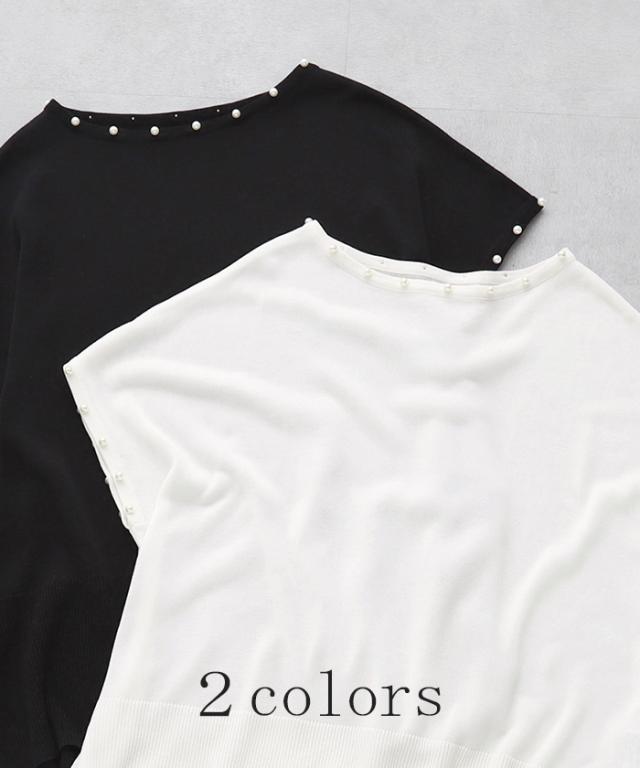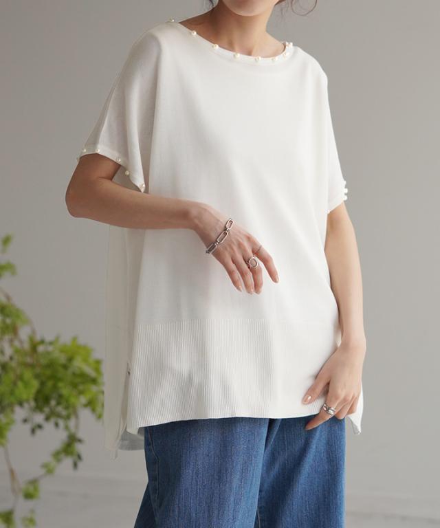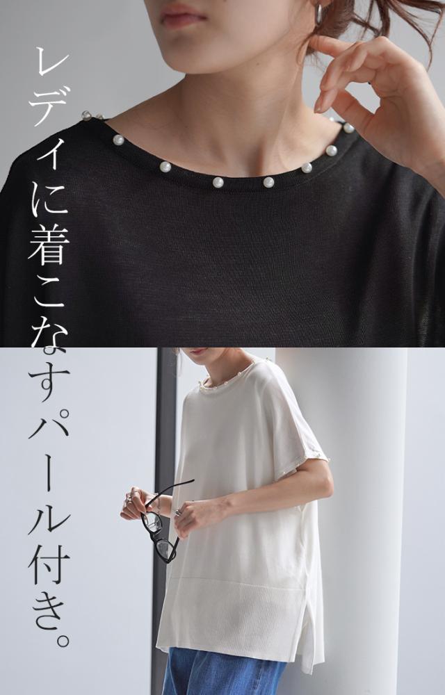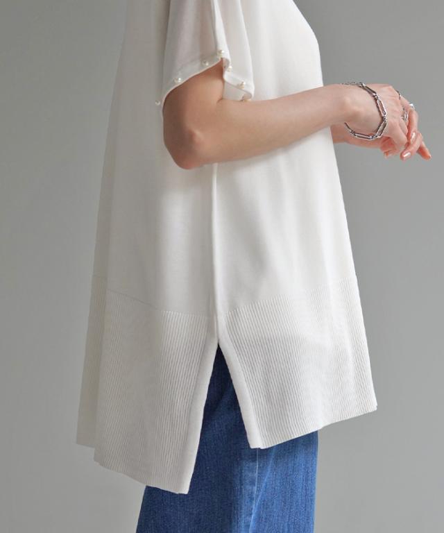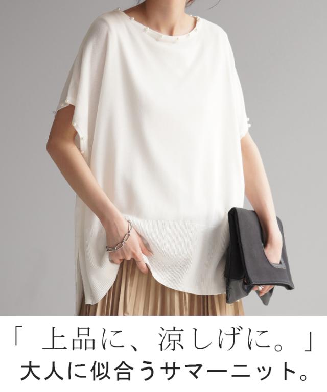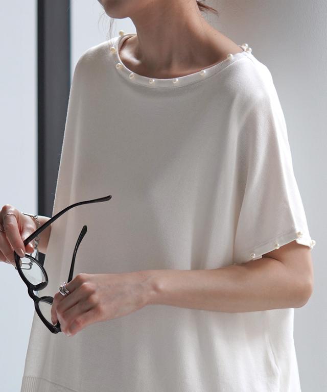 パールをあしらったフレンチスリーブがフェミニンなサマーニットです。
