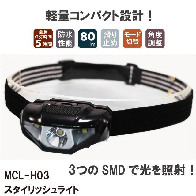 マッチョ(MacCho) MCL-H03BK スタイル&コンパクトLEDヘッドライト 80ルーメン 雨天使用 電池式 登山 釣り フィッシング アウトドア ライト 防水 防災 災害