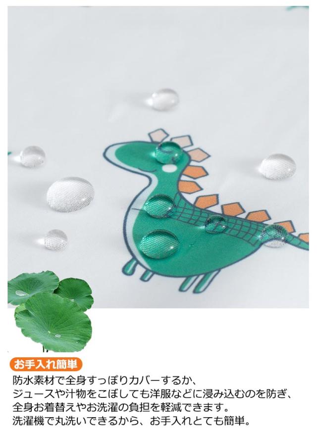 | 後片付けのストレスから解放!吸盤付食器使用可能。 普通のロングエプロンに変身可能♪ 【食べこぼしをしっかりキャッチ】チェアとテーブルに固定できるテーブル一体型エプロ体とテーブルの間に隙間がないから、お洋服もチェアも汚れません◎食事後はエプロンごとさっと片づけるだけ。 【吸盤付食器使用可能】テーブルクロス一体型エプロンはスナップボタンデザインで吸盤付き食器も使えます。さらに、テーブルクロス部分は取り外しできるから、普通のロングエプロンとしても使える2WAY仕様。 【長袖・袖なし2タイプ】春夏向けのノースリーブタイプとオールシーズン活躍できる長袖タイプをご用意しました。長袖タイアプは半袖にもなる2WAYデザイン、一年中快適にお使いいただけます。 【お手入れ簡単】防水素材で全身すっぽりカバーするか、ジュースや汁物をこぼしても洋服などに浸み込むのを防ぎ、全身お着替えやお洗濯の負担を軽減できます。洗濯機で丸洗いできるから、お手入れとても簡単。 【様々なシーンで活躍】お食事以外、書道練習、絵の具や粘土、手型アートなど…思いっきりやらせてあげたい時に! 【ハイチェアもローチェアも適応】市販のほとんどのベビーチェアに使えます。 | |