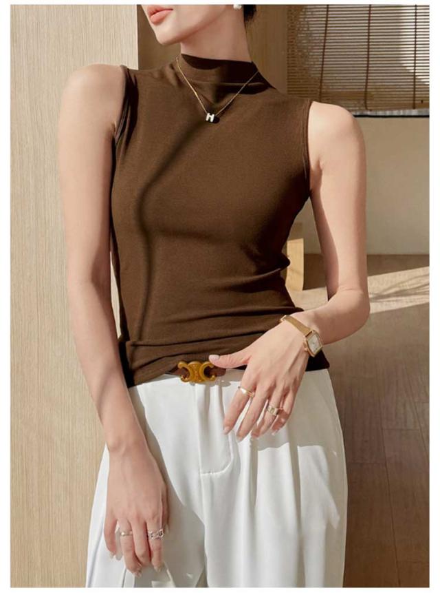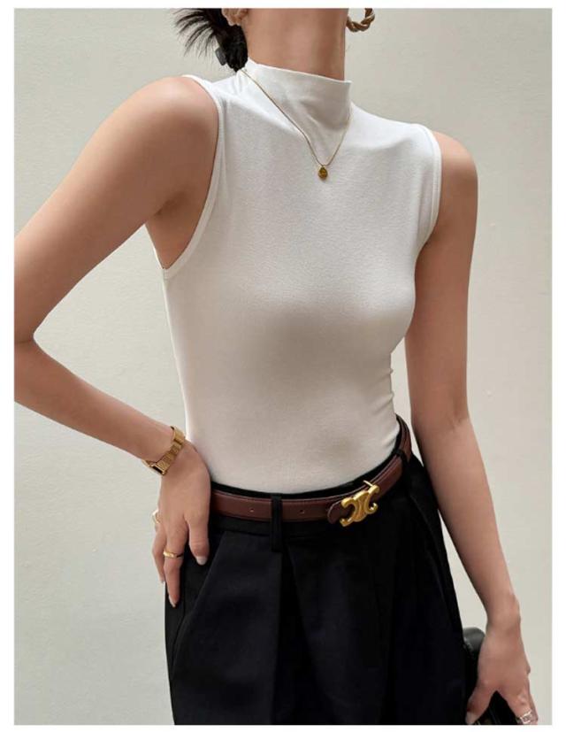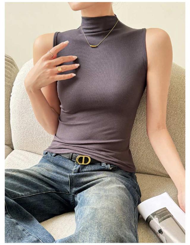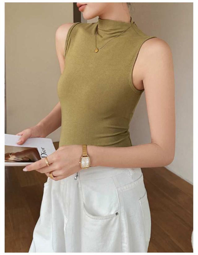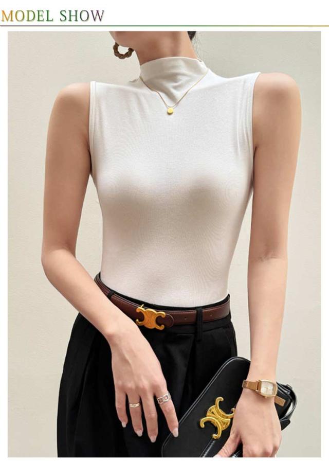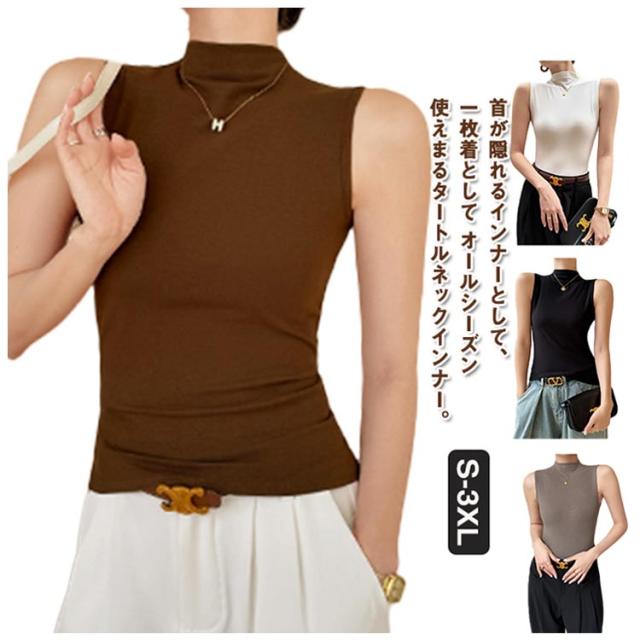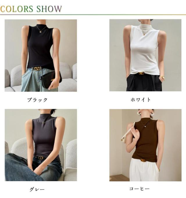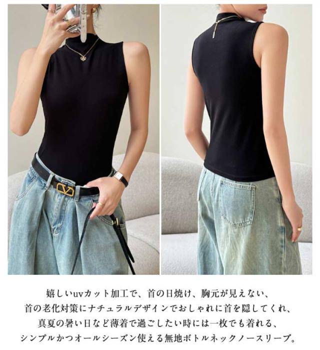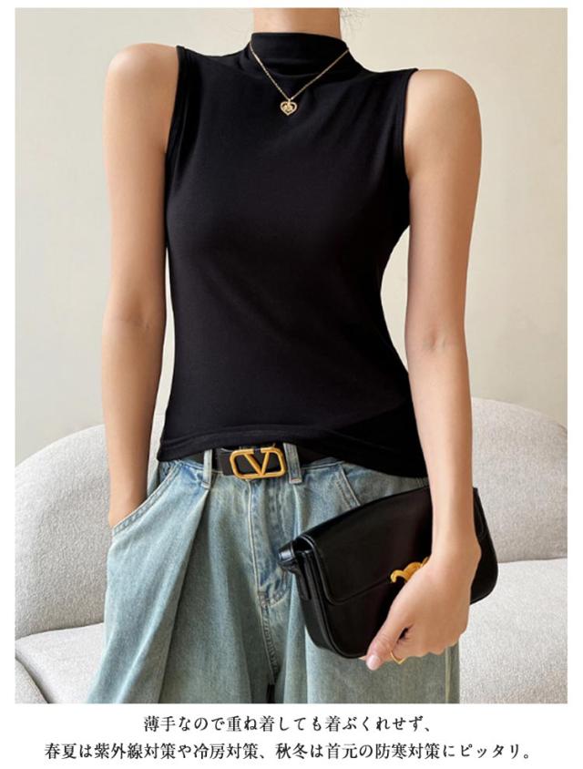 ハイネック ノースリーブ タンクトップ レディース 薄手 タートルネック インナー ボトルネック uvカット tシャツ カットソー トップス タイト 伸縮性 ストレッチ 春 夏 秋 冬 夏用 無地 紫外線対策 首の日焼け 重ね着 大人 上品 送料無料