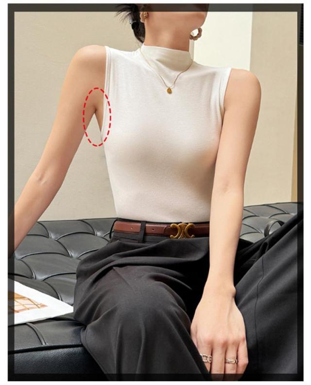| 首が隠れるインナーとして、一枚着として オールシーズン使えまるタートルネックインナー。 薄手なので重ね着しても着ぶくれせず、春夏は紫外線対策や冷房対策、秋冬は首元の防寒対策にピッタリ。 嬉しいuvカット加工で、首の日焼け、胸元が見えない、首の老化対策にナチュラルデザインでおしゃれに首を隠してくれ、真夏の暑い日など薄着で過ごしたい時には一枚でも着れる、シンプルかつオールシーズン使える無地ボトルネックノースリーブ。 | |