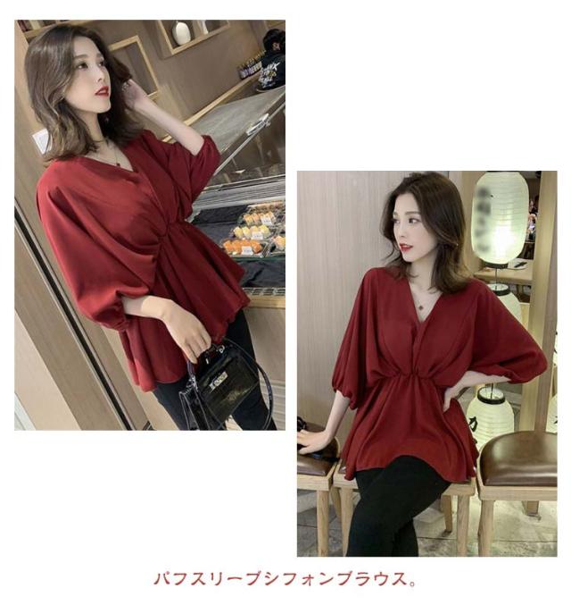 | きちんと感漂うエアリーなトップス。パフスリーブシフォンブラウス。 シンプルで上品なデザインなのでオンオフ問わず着れる優れもの。 普段使いはもちろん、オフィスやちょっとしたお出かけにも活躍します。 | |
