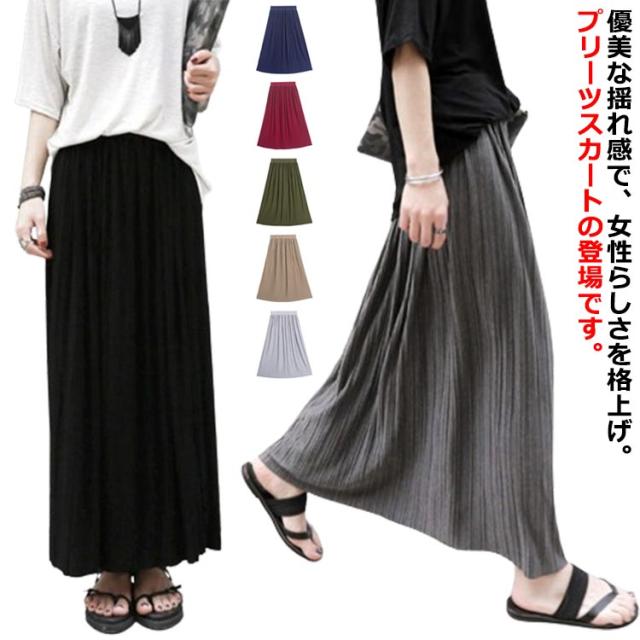 【全7色】 プリーツスカート ロング マキシ 丈 スカート プリーツ モダール 薄手 フレア ロングスカート マキシスカート フレアスカート ウエストゴム ボリューム Aライン きれいめ おしゃれ ふんわり シンプル 無地 カジュアル