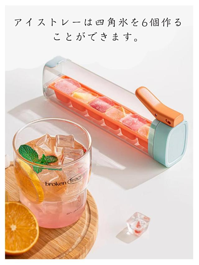 | できあがった氷を片手で押すだけで一気に取り出すことができる、ストレスフリーな製氷皿です。 取り出しやすい!一気に6個を取り出せる! アイストレーは四角氷を6個作ることができます。 密封性の高い蓋付きでほかの食材の匂い移りを防ぎ衛生的に保存可能。 スリムで冷凍庫内でも邪魔にならないサイズ感が使いやすい! | |
