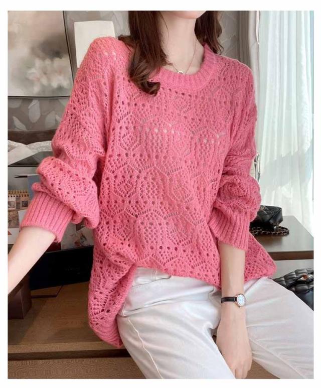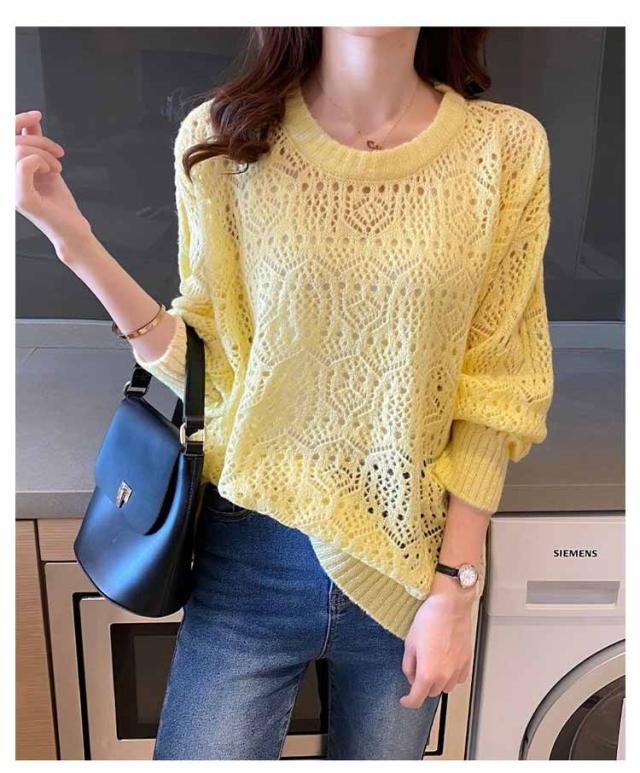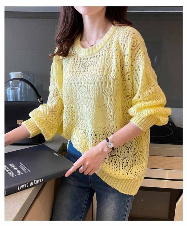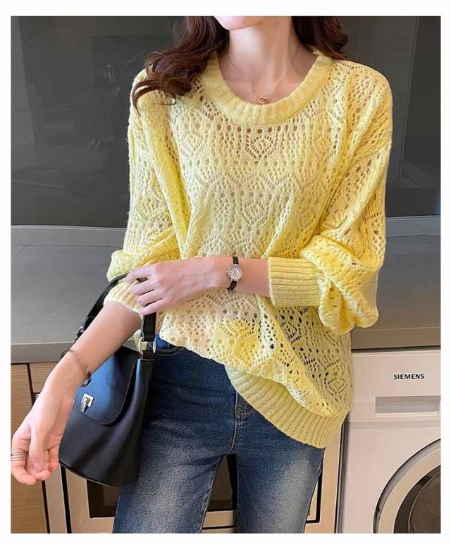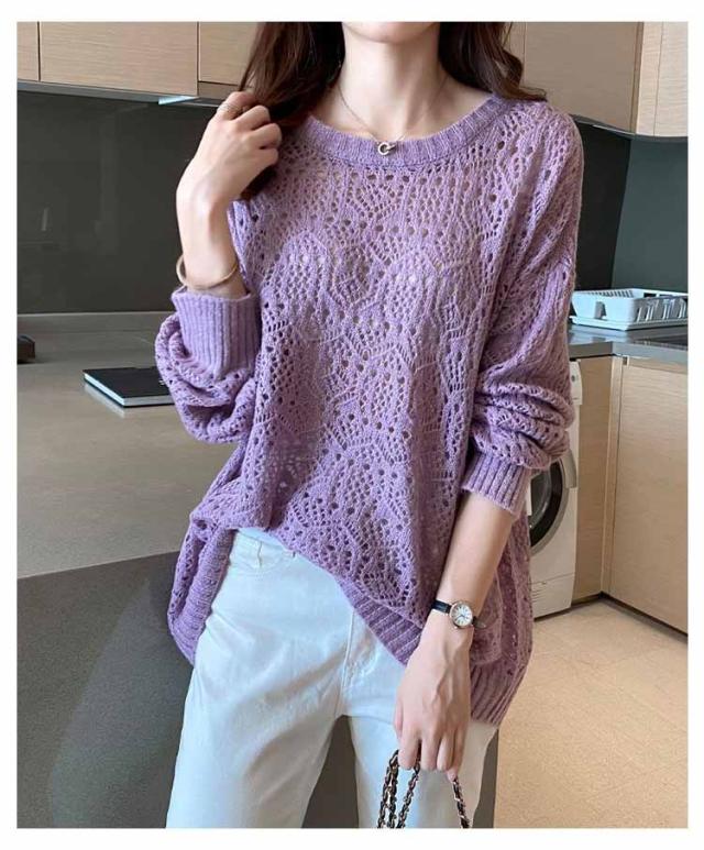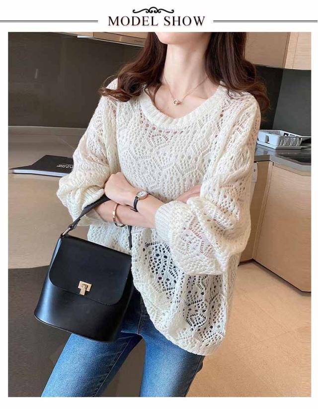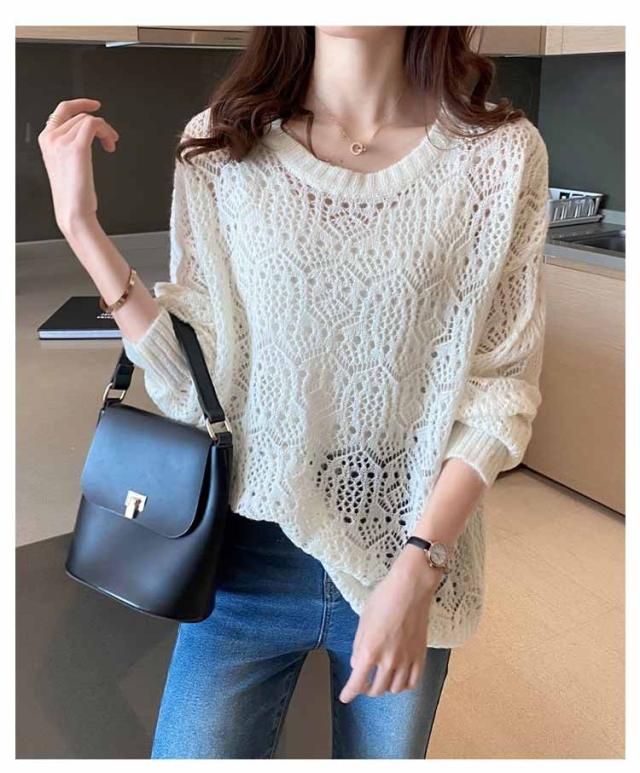 送料無料 レイヤード トップス サマーニット レディース 長袖 透かし編みニット 春 夏 ゆったり 大人 可愛い ライトニット 重ね着 大きいサイズ シンプル きれいめ 通勤 通学 S M L XL
