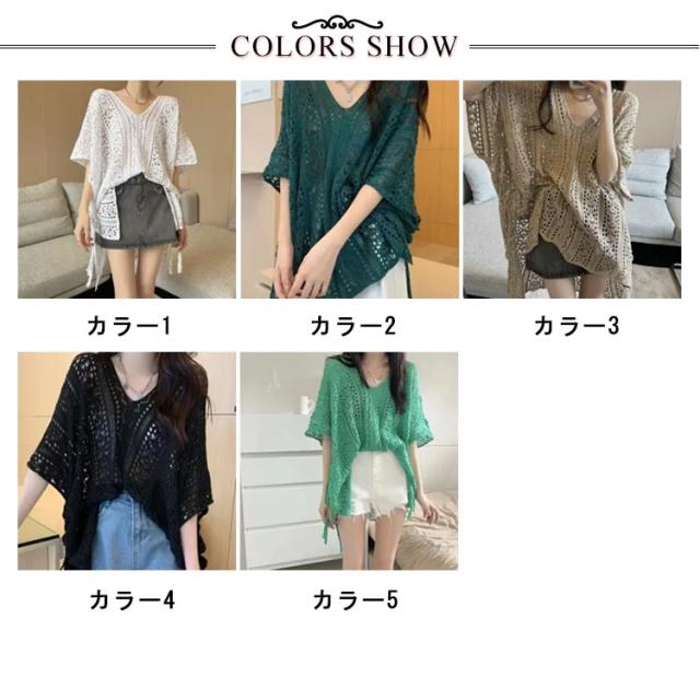 | アシンメトリーデザイン!着るだけでこなれ感を演出! Vネックの透かし編みサマーニットです。 キャミソールやタンクトップと合わせたヘルシーな肌見せがおすすめ。 ボトムスを選ばずにコーディネートできて、着回し力抜群のトップスです。 | |