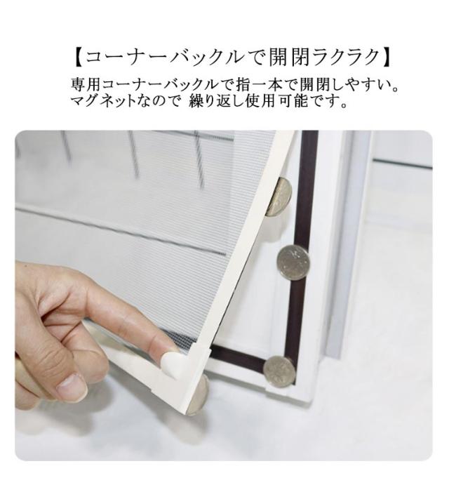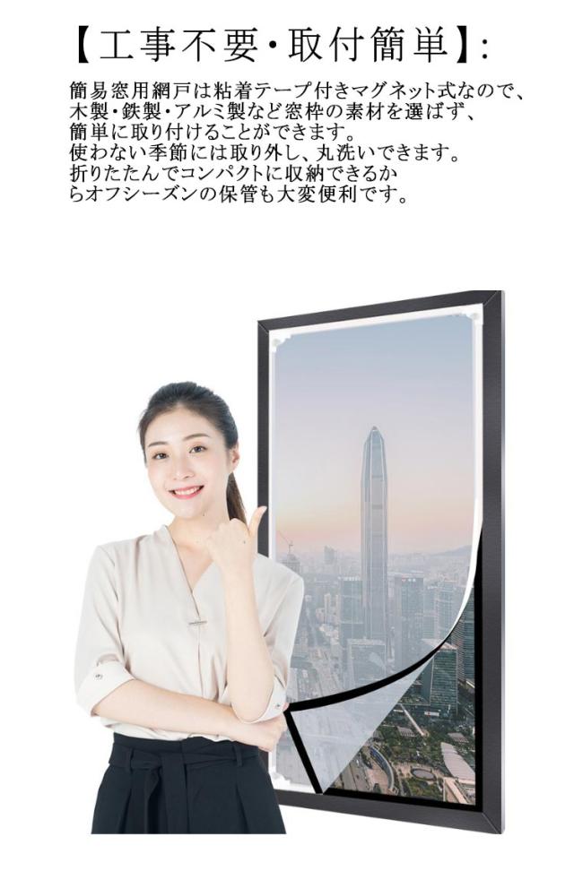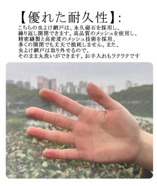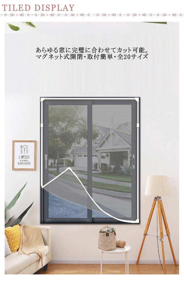 | あらゆる窓に完璧に合わせてカット可能。 マグネット式開閉・取付簡単・全20サイズ 【工事不要・取付簡単】:簡易窓用網戸は粘着テープ付きマグネット式なので、木製・鉄製・アルミ製など窓枠の素材を選ばず、簡単に取り付けることができます。使わない季節には取り外し、丸洗いできます。折りたたんでコンパクトに収納できるからオフシーズンの保管も大変便利です。 【カット可能・サイズ調節可能】:この防虫ネットは、カットによるサイズ調節が可能です。お宅の窓大きさに完璧に合わせて防虫ネットをカットできます。だから、この防虫ネットはどんな窓枠にも網戸がぴったりと納まります。この防虫ネットキットがあれば、網戸を作るお手間もお金も節約します。 【コーナーバックルで開閉ラクラク】専用コーナーバックルで指一本で開閉しやすい。マグネットなので 繰り返し使用可能です。 【抜群な防虫・防蚊】:こちらの虫除け網戸は、高密度メッシュで微細な虫・蚊の侵入も防ぎます。隙間もなく全面覆う窓用網戸タイプなので、虫除け網戸を窓枠に設置しておくと、窓を閉めなくても、虫や蚊などの侵入を気にせず、空気の通しが良くできます。 【通風性】:この蚊よけ網戸の透過率が高く風通しも優れています。十分な風通しも得ることができます。 【優れた耐久性】:こちらの虫よけ網戸は、永久磁石を採用し、繰り返し開閉できます。高品質のメッシュを使用し、精密縫製と高密度のメッシュ技術を採用、多くの開閉でも丈夫で損耗しません。また、虫よけ網戸は取り外せるので、そのまま丸洗いができます。お手入れもラクラクです | |