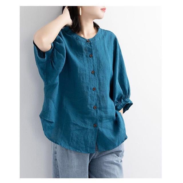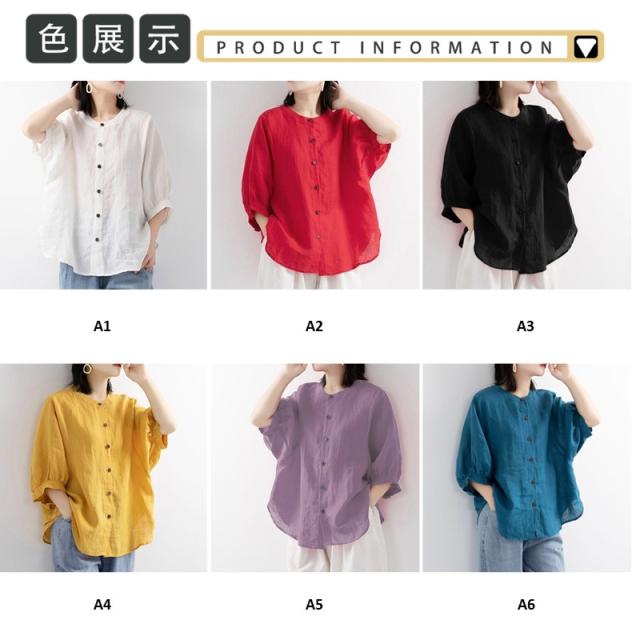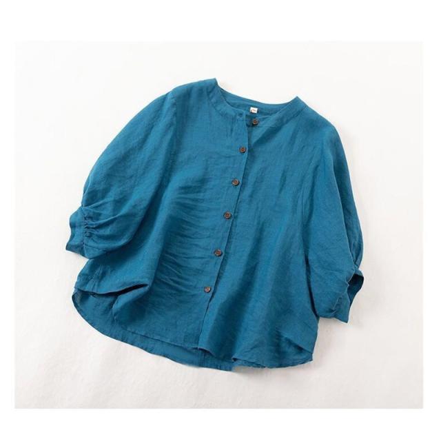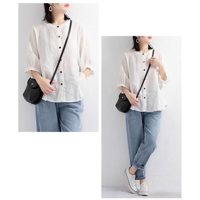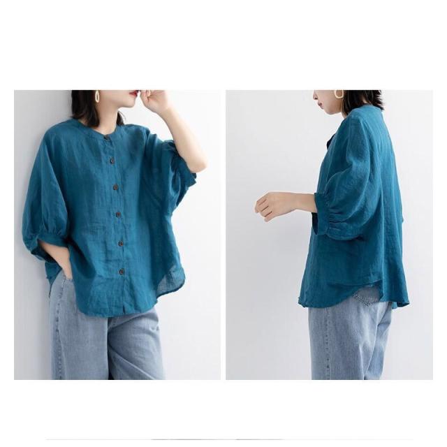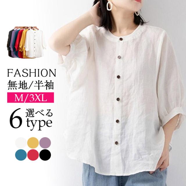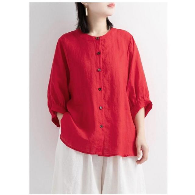 2点買うと10%OFF レディース ブラウス オフィス 通勤 リネンシャツ 春夏新作 薄型 綿麻 トップス 無地 体型カバー 無地