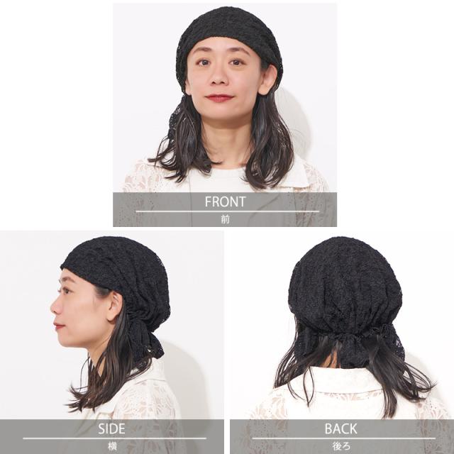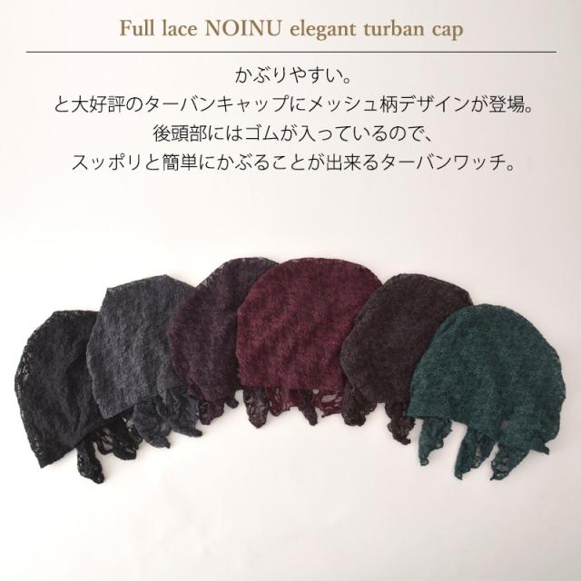 レディース オールシーズン 秋冬 春夏 ポリエステル100% 帽子 バンダナ バンダナキャップ | CHARM 総レース NOINU エレガント ターバンキャップ tw-lno