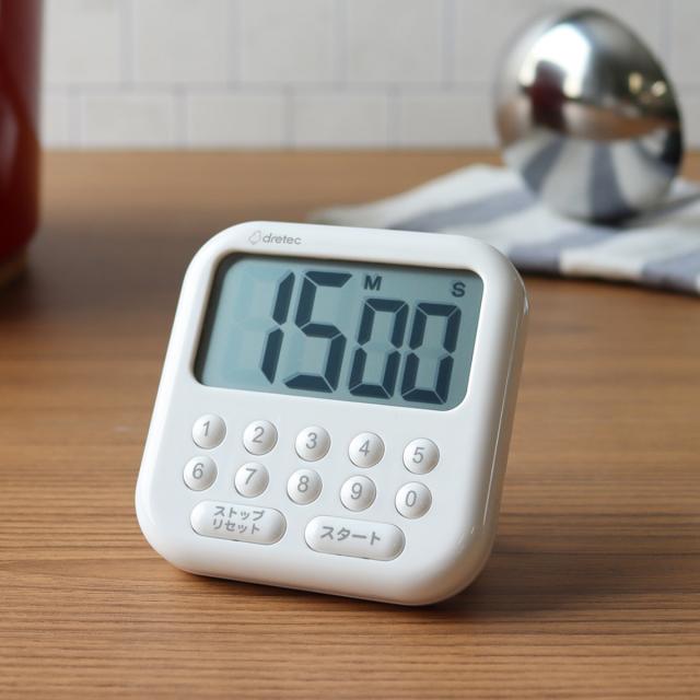キッチンタイマー シャボン10 大画面タイマー マグネット付き フック付き ドリテック ( dretec デジタル タイマー マグネット スタンド 10キー キッチン 料理 学習 勉強 簡単 見やすい カウントダウン カウントアップ リピート )