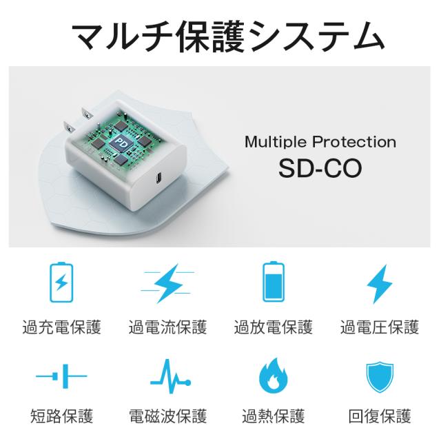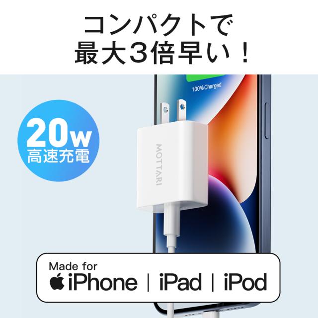 【20Wの高出力で充電時間を大幅短縮】: 20Wの高出力で、iPhoneやその他のデバイスの充電時間を大幅に短縮します。忙しい日常や急ぎの充電が必要な場合でも、迅速に対応できます。
