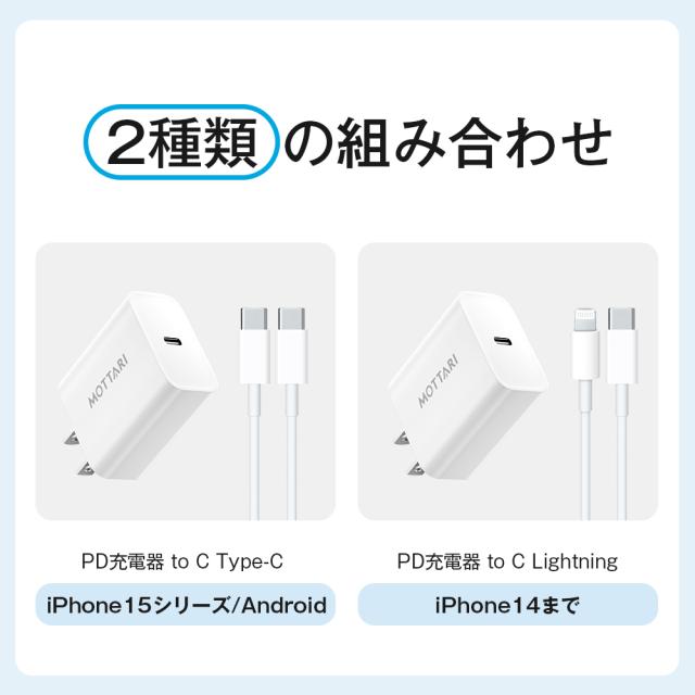 「20W GaN急速充電セット」iphone 充電器 ケーブルセット 急速充電器 android タイプc USB-C 電源アダプター PD充電器 MFi/PSE認証済み 多種機対応