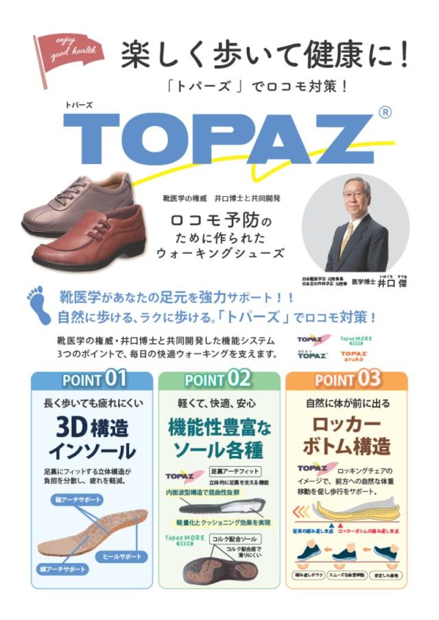 「トパーズ」のシューズは、靴医学の権威である井口博士(日本靴医学会元理事長・日本足の外科学会 元理事)が監修しています。
