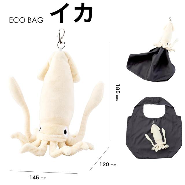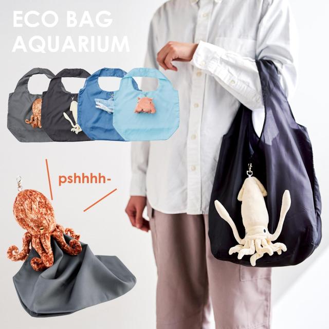 エコバッグ エコバック 折りたたみ 折り畳み おりたたみ マチ広 大容量 丈夫 コンビニ弁当 リュック キーホルダー カラビナ イカ タコ ホオジロザメ メンダコ アクアリウムエコバック アニマル 海の生き物 グッズ